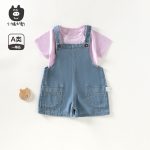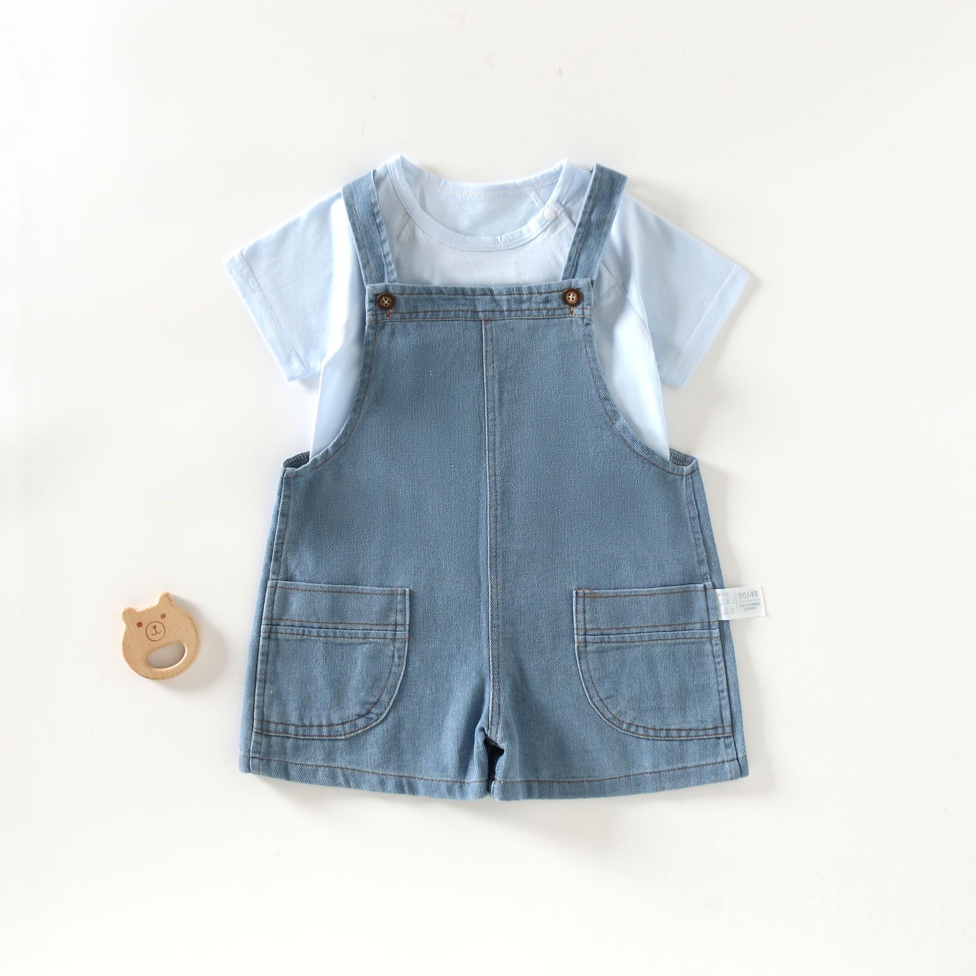 Piggy David New Boys and Girls Baby Casual Pants Summer Children’s Wear Denim Strap Shorts