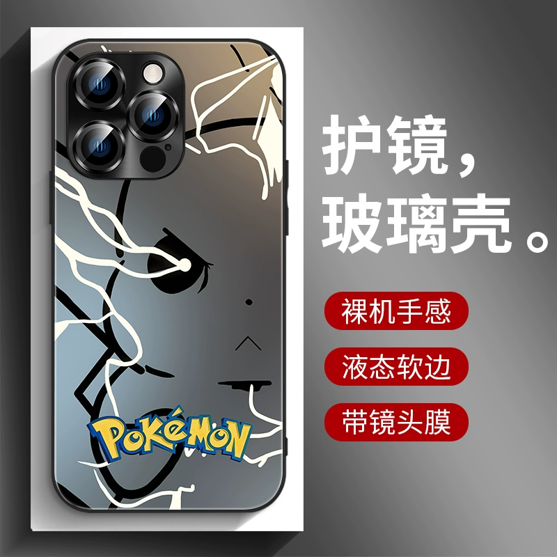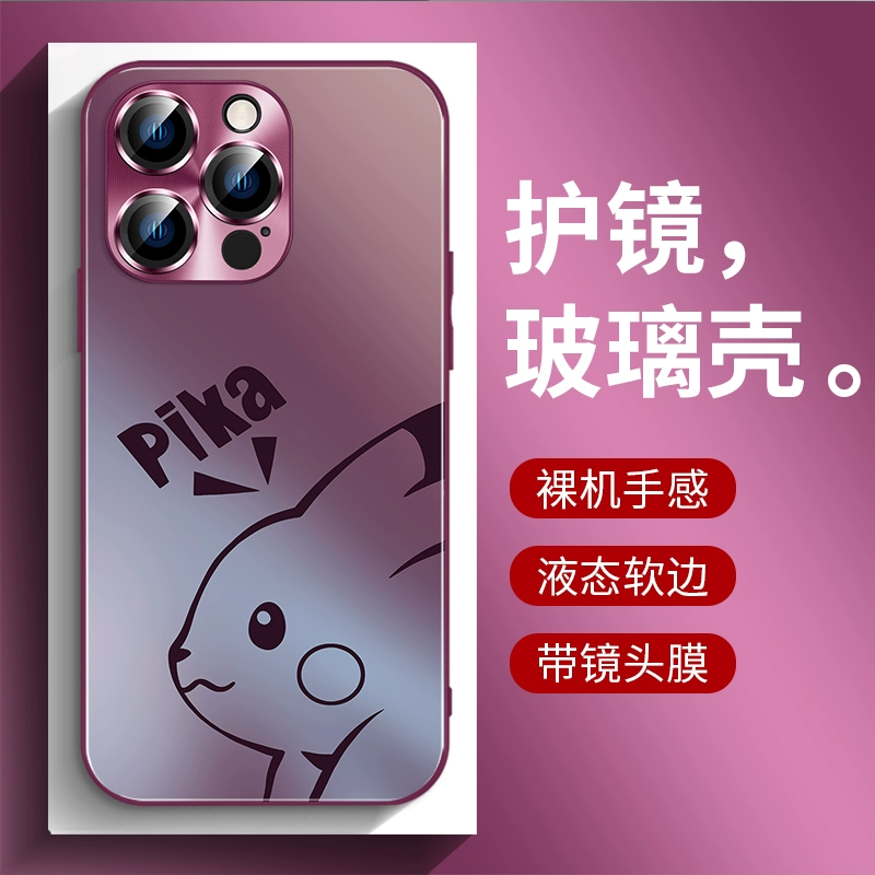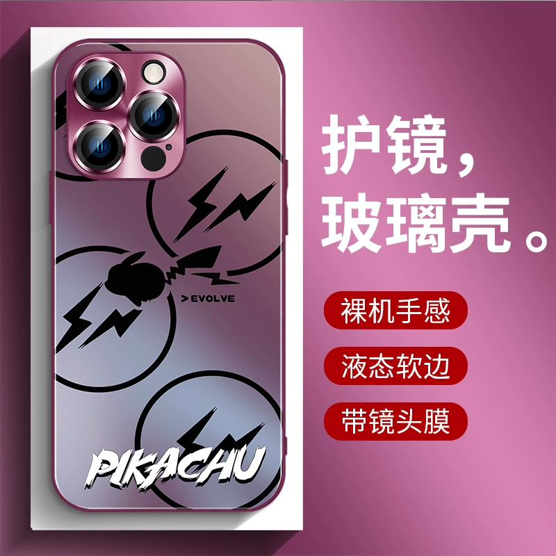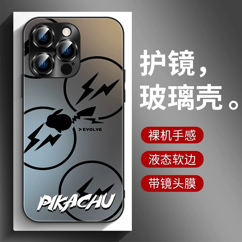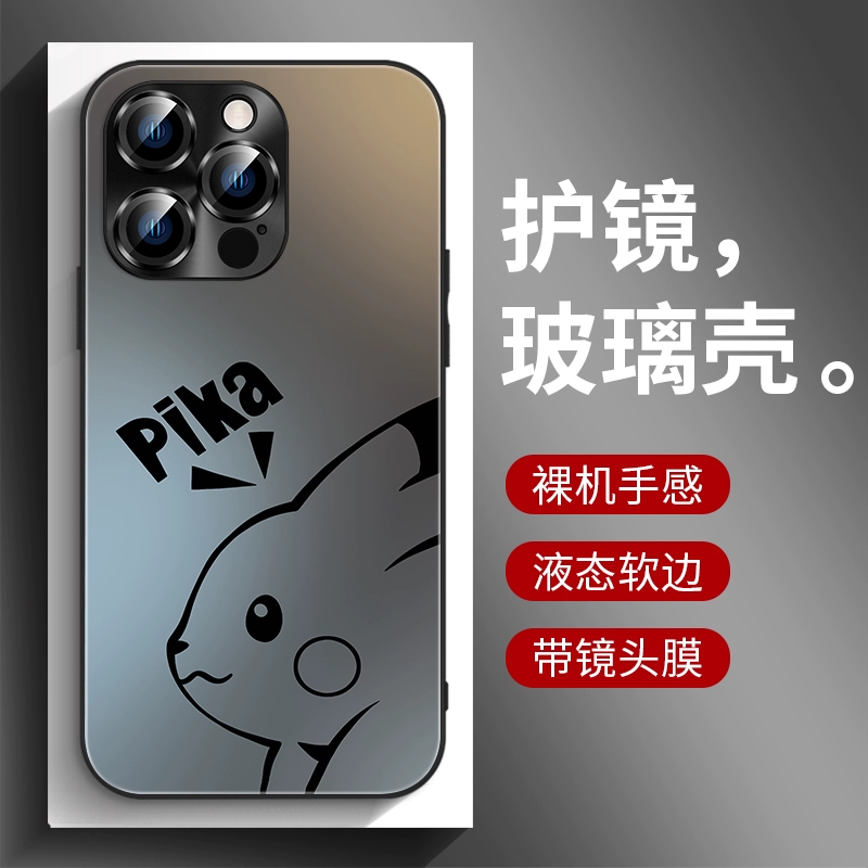 | nameOriginal | Pikachu iphone15 mobile phone case frosted glass 14Promax new Apple 13 comes with lens film plus black gradient 12 all-inclusive simple anti-fall 11 trendy cute high-end personality |