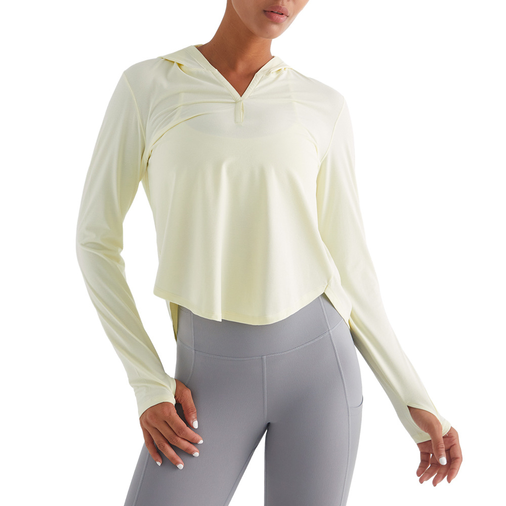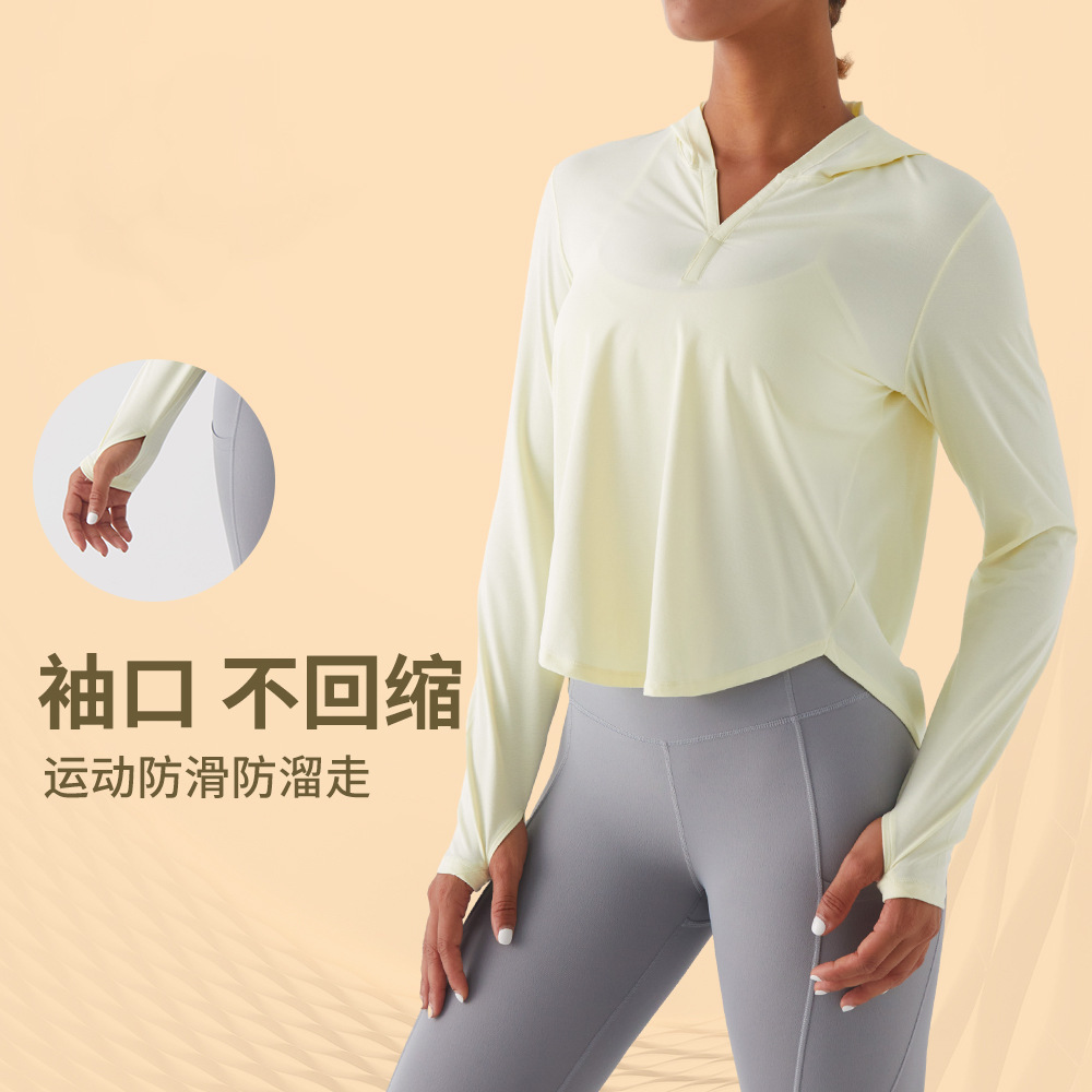 | nameOriginal | Pilates training clothes women's workout clothes outdoor sports morning running long sleeve beauty back hooded slim breathable yoga T-shirt |