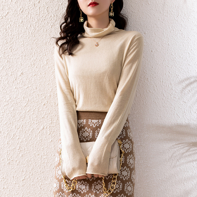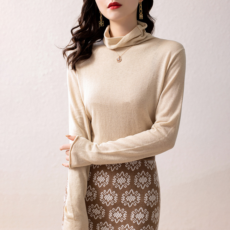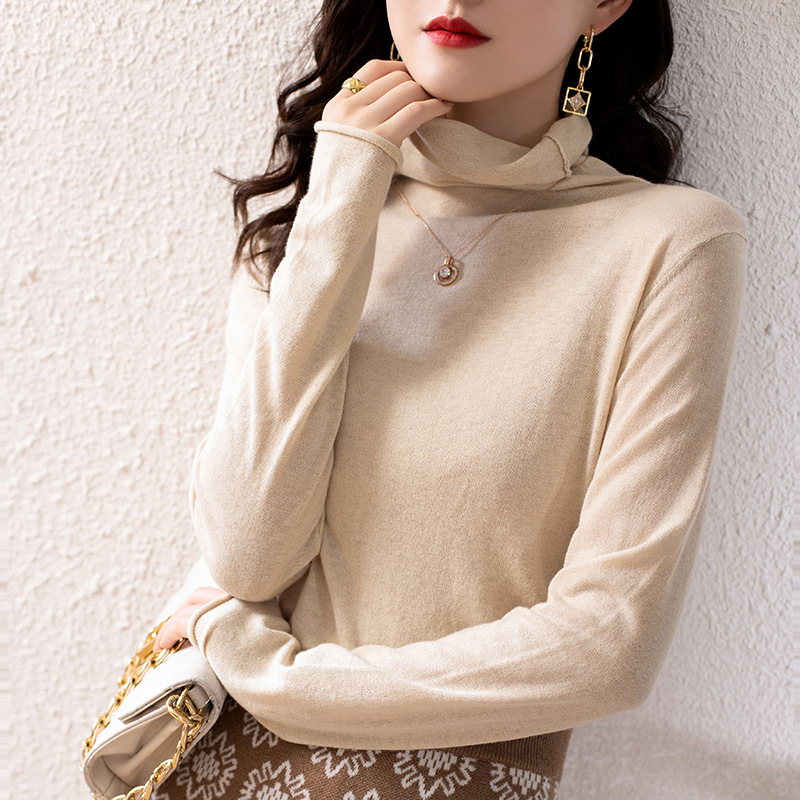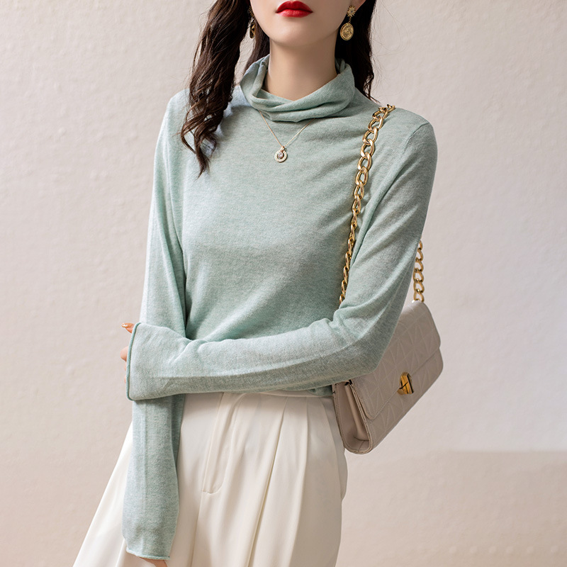 Pile collar knitted bottoming shirt for women Spring and Autumn elegant commuter long-sleeved top solid color inner pullover sweater for women