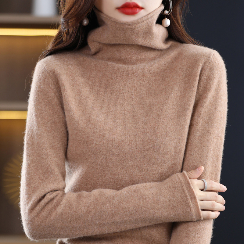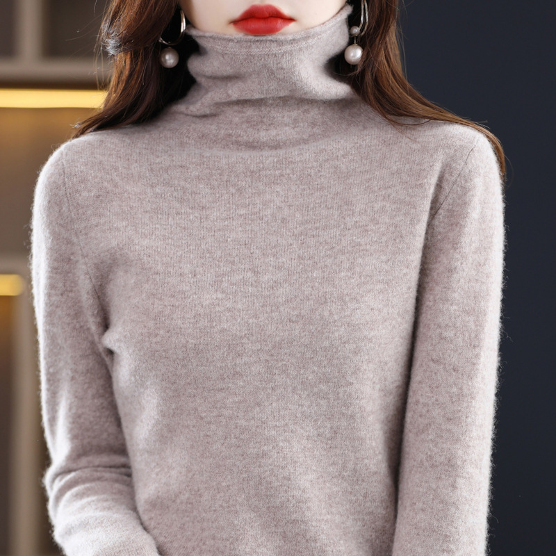 Pile collar woolen sweater for women 100% pure wool 23 autumn and winter western style inner knitted pullover cashmere bottoming sweater for women