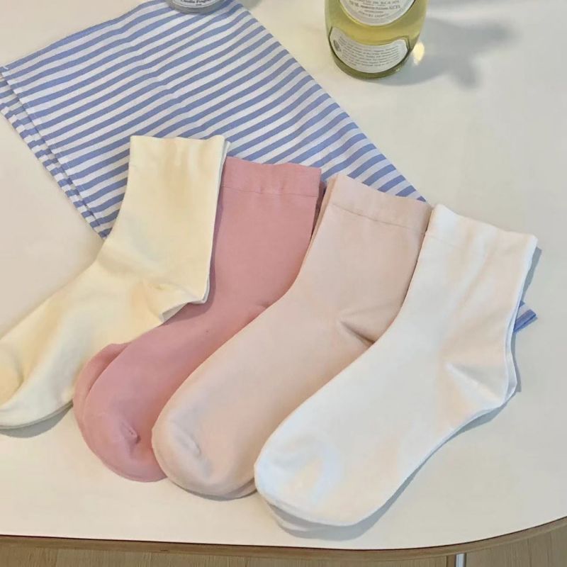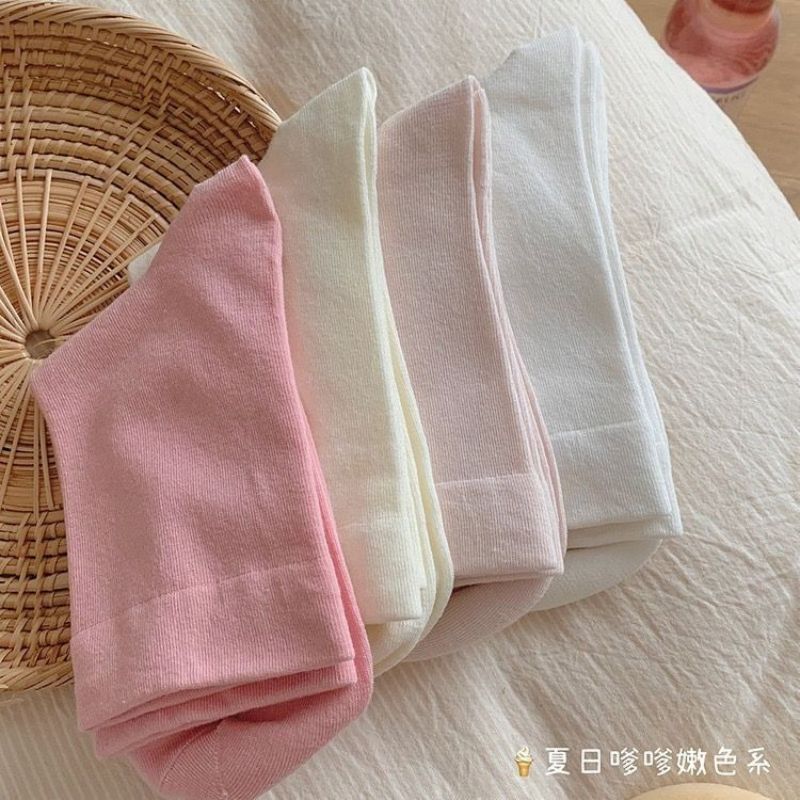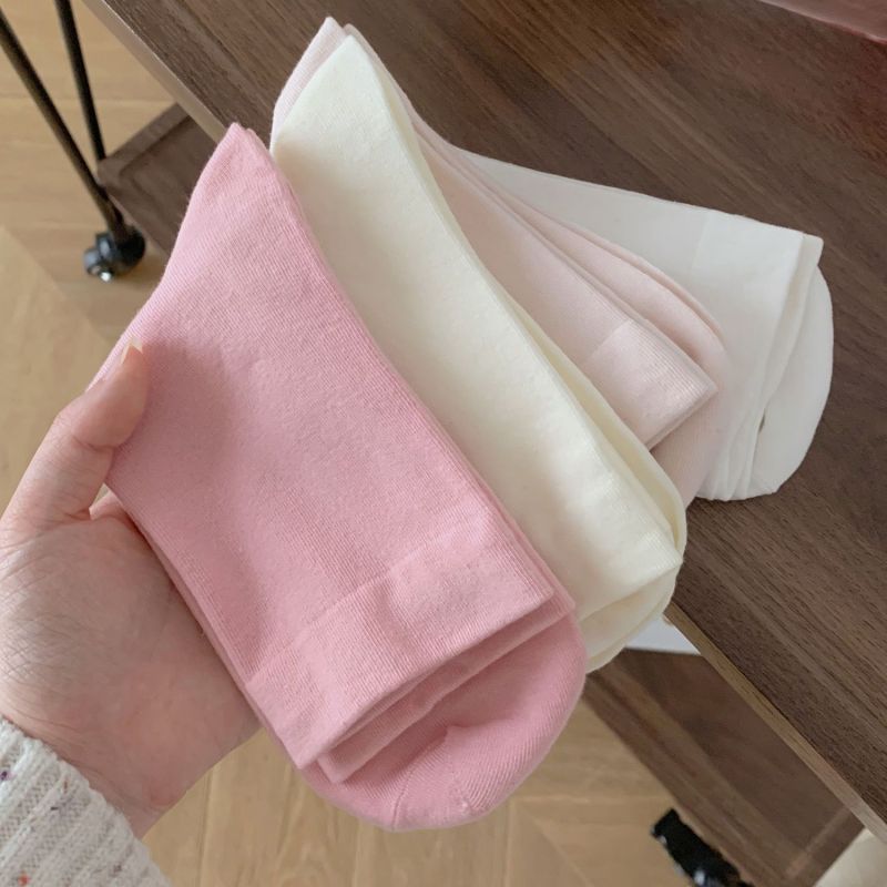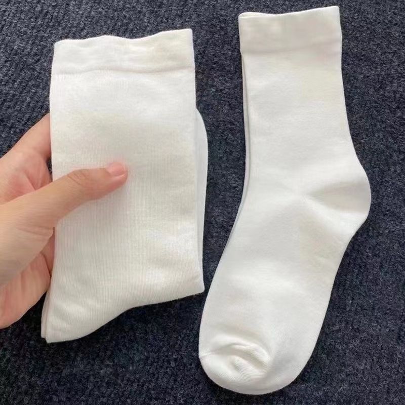 Piled socks women's white mid-length socks spring and autumn matching small leather shoes black socks thin Autumn lunar November summer boneless socks
