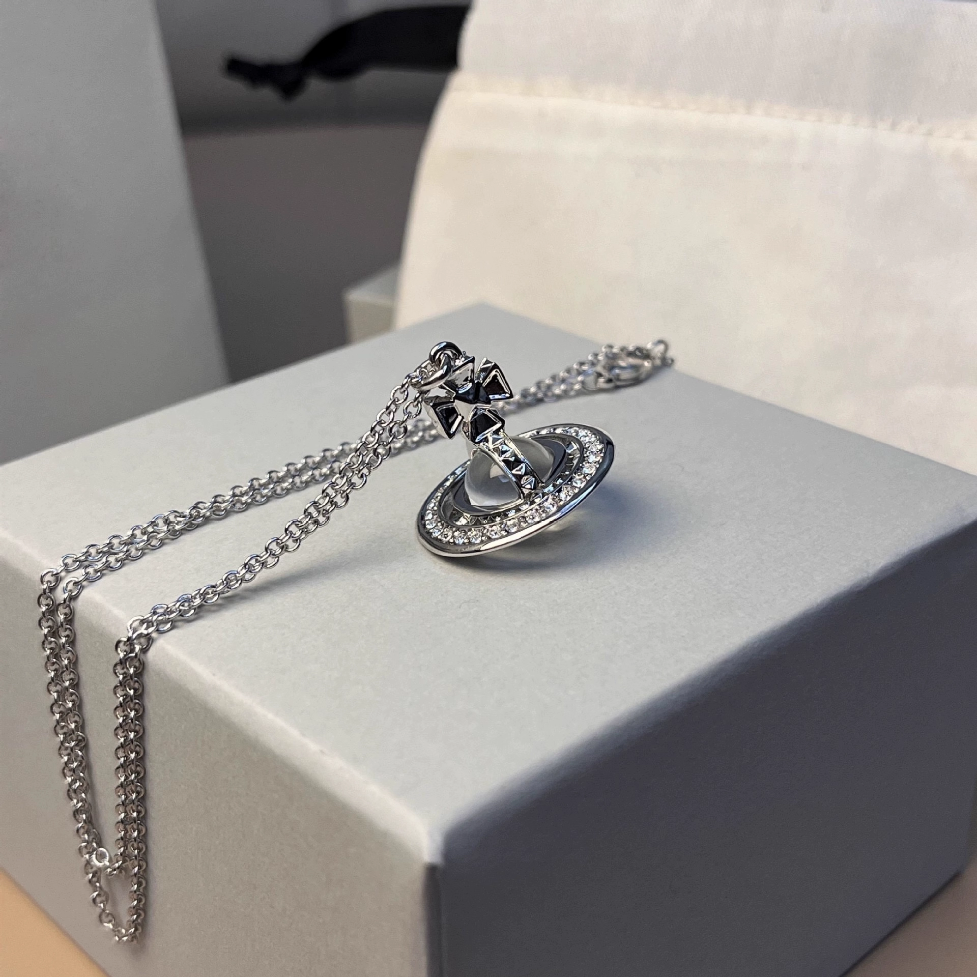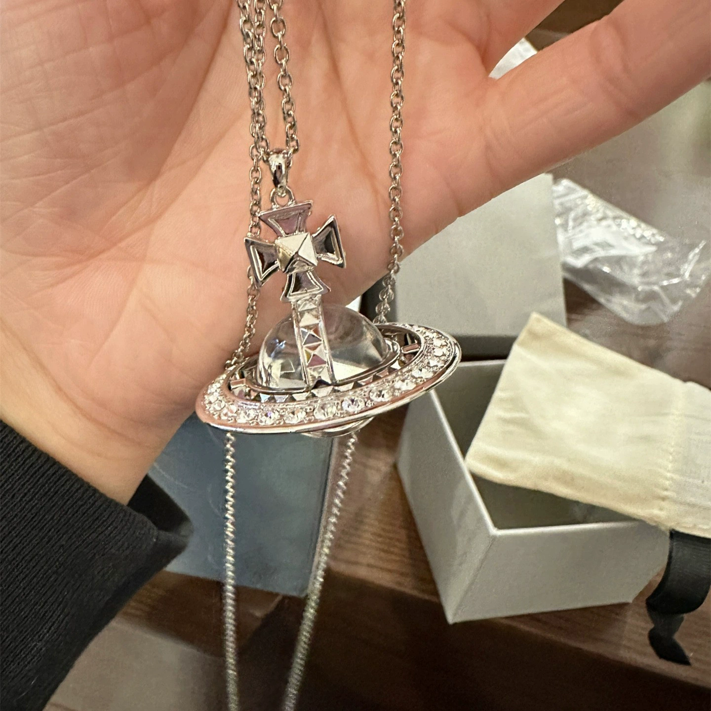 Pina flash diamond silver transparent three-dimensional Saturn necklace for women niche high-end clavicle chain personalized long sweater chain