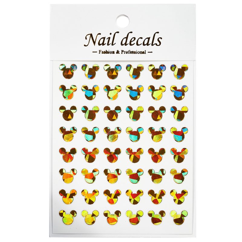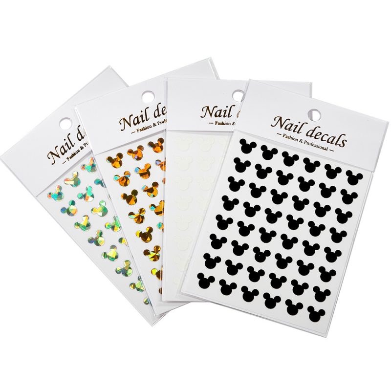 nameOriginal | Pinduo hot selling cute cartoon nail stickers 4-color laser gold silver black and white childhood cartoon mouse nail patch |