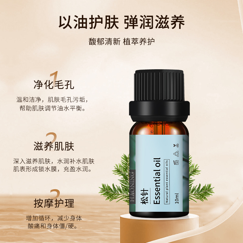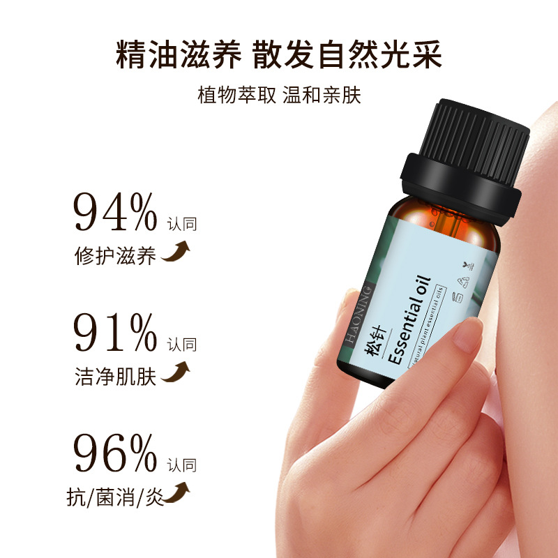 Pine Needle single square essential oil 10ML pore cleaning balance water oil mild SPA bubble bath massage aromatherapy essential oil wholesale