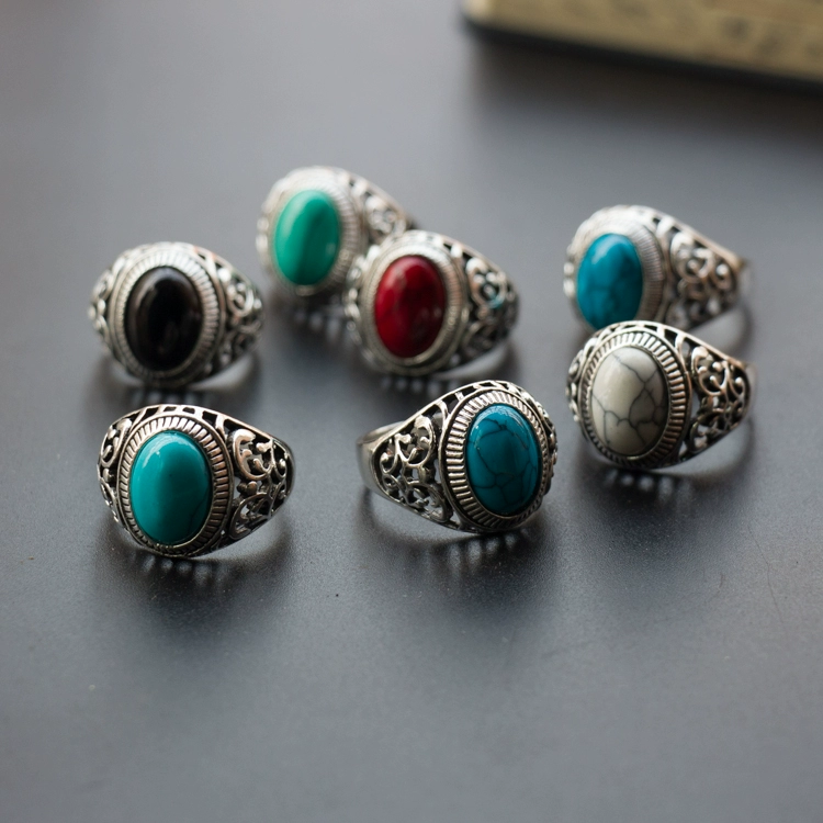 | nameOriginal | Pine stone ancient silver couple's elegant street stall ring |