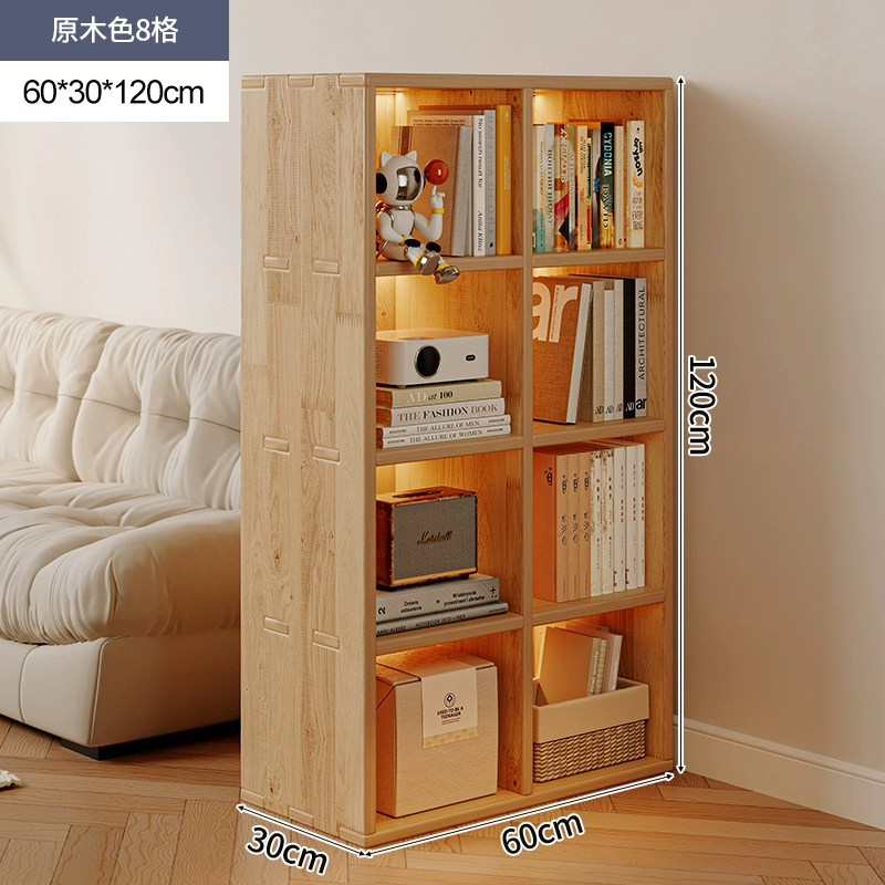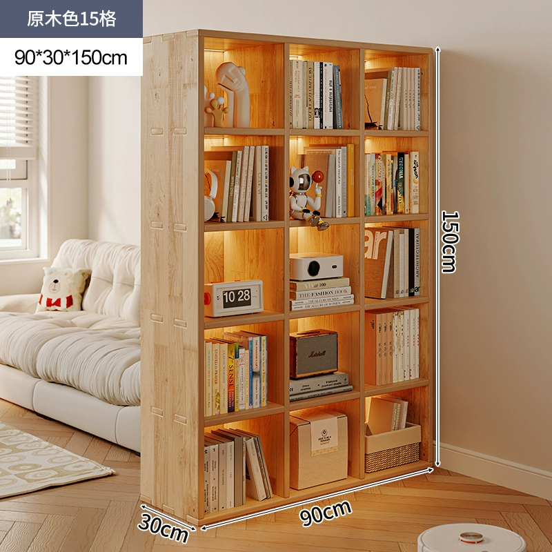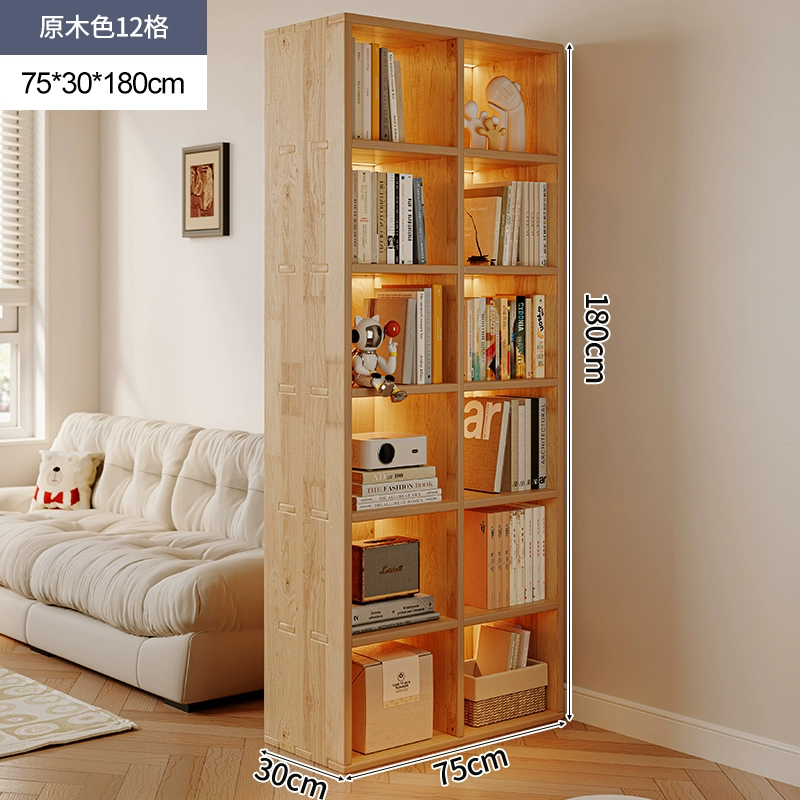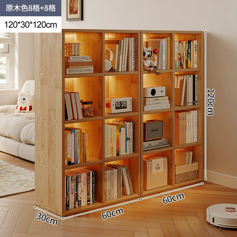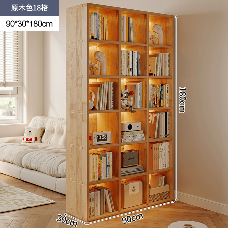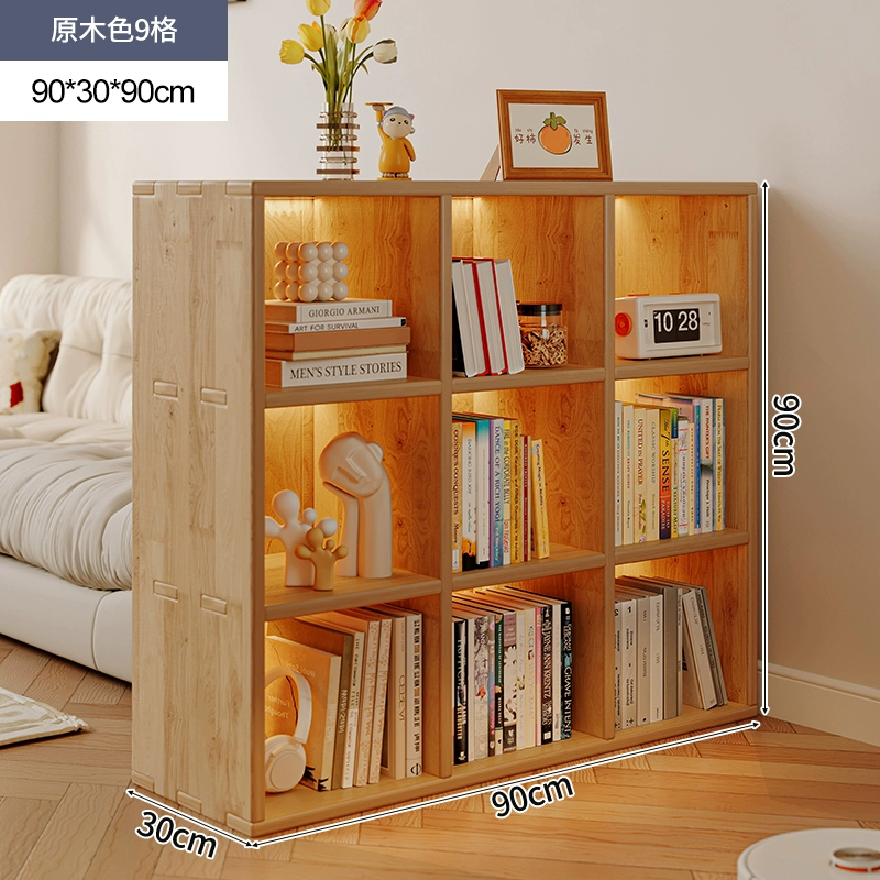 Pine wood bookshelf floor-standing storage rack solid wood partition storage display grid shelf home living room children's bookcase