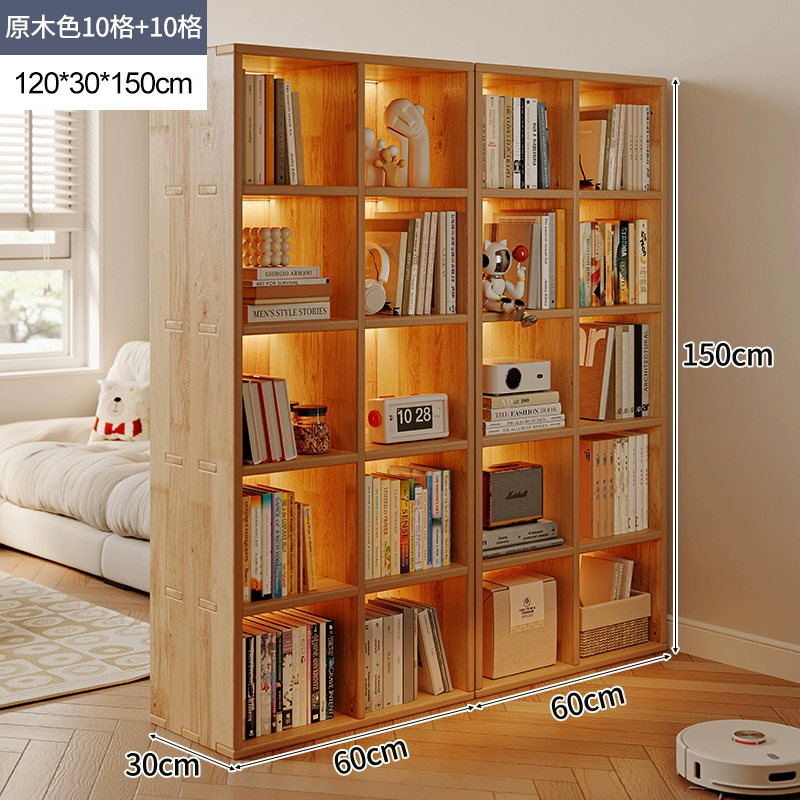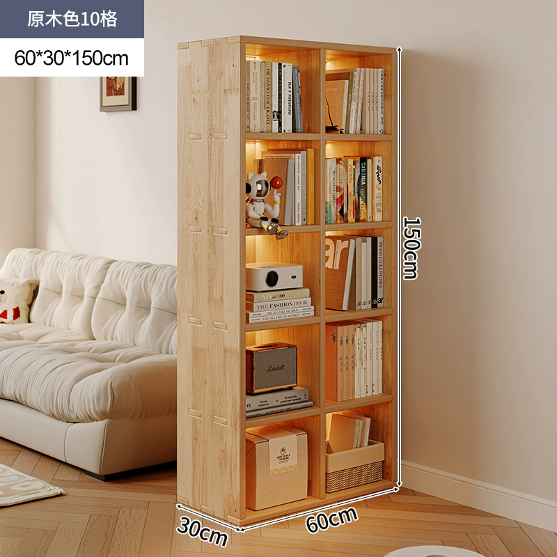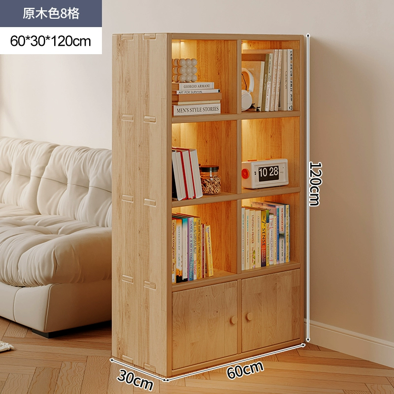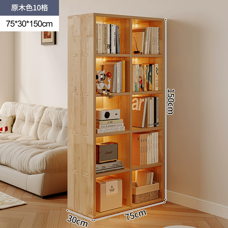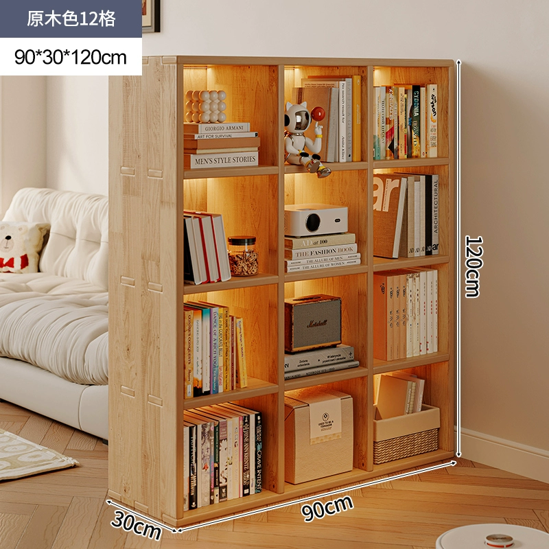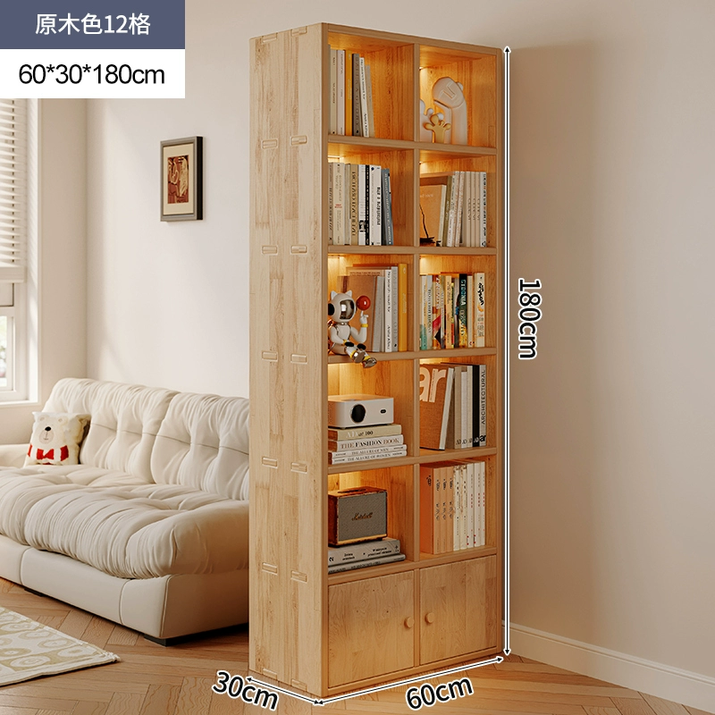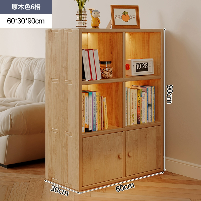 Pine wood bookshelf floor-standing storage rack solid wood partition storage display grid shelf home living room children's bookcase