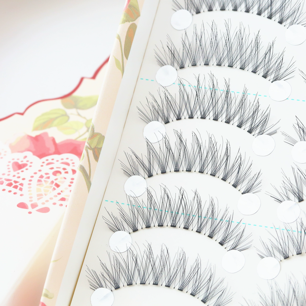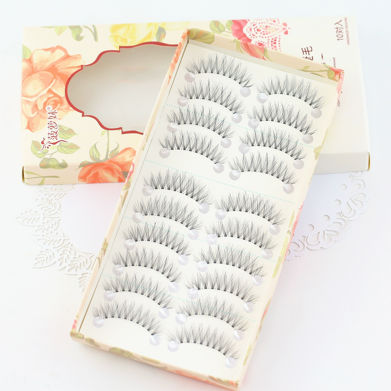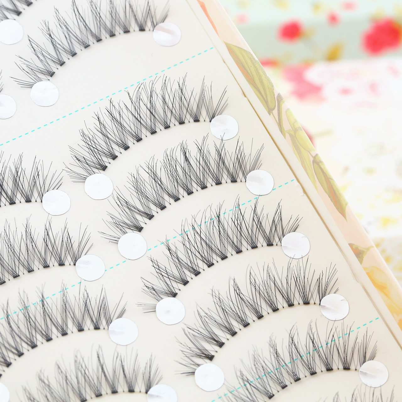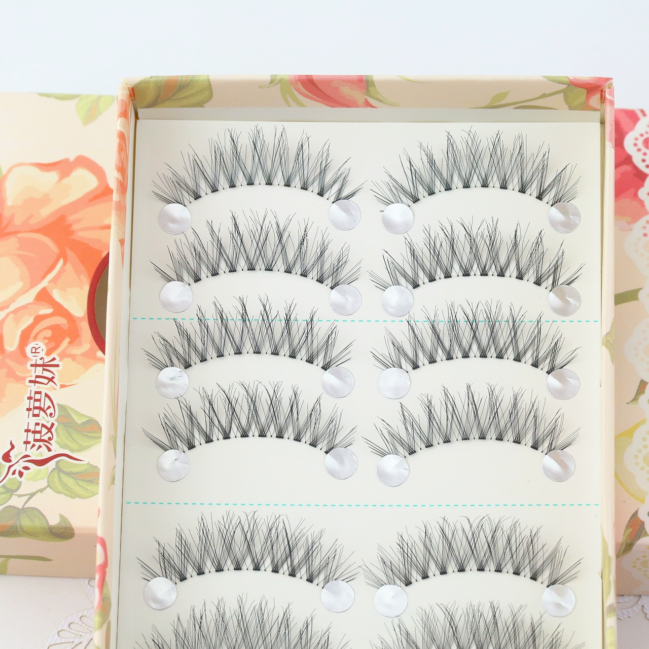 Pineapple Girl False Eyelashes Natural Female Cross Slim 10 Pairs B15 Handmade Fishing Line Transparent Stem 12mm High Temperature Wire