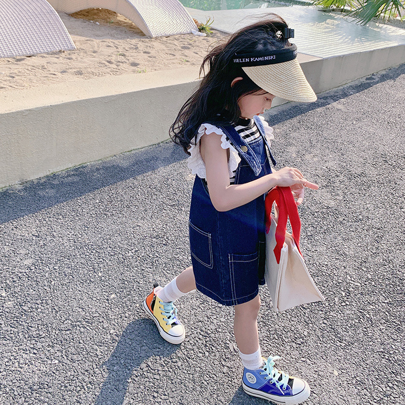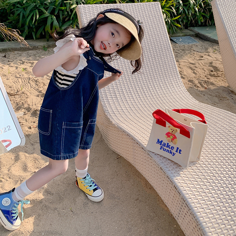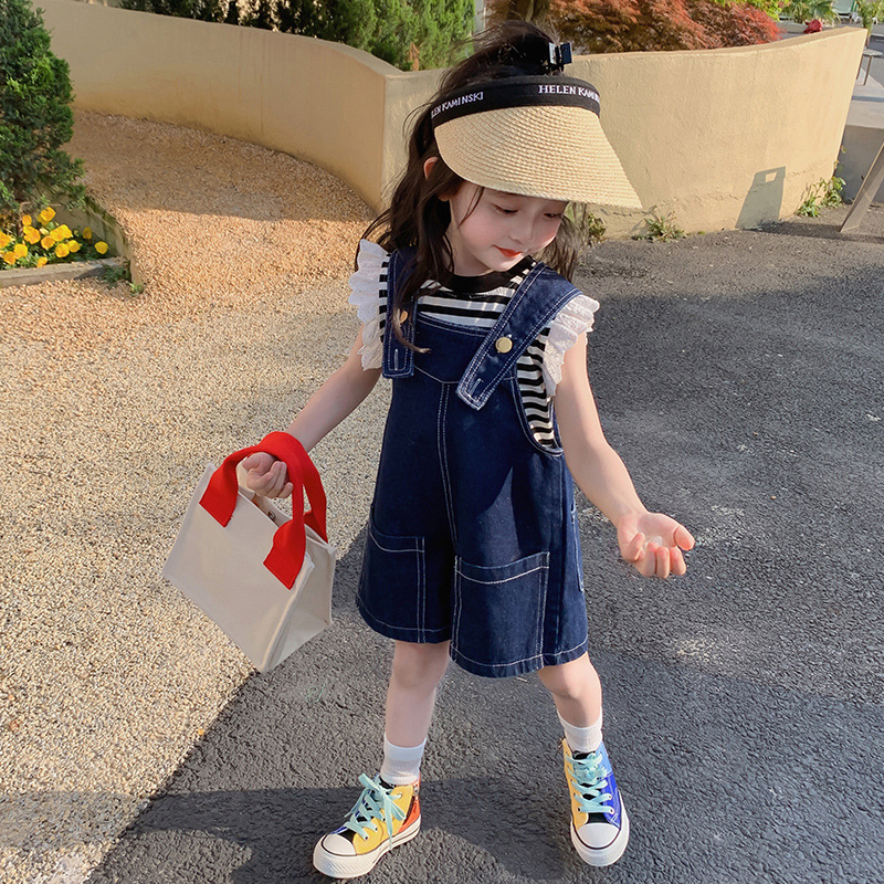 | nameOriginal | Pingtou girl's summer wear Denim suspender shorts 2022 new children's medium and small children's baby pants summer thin |