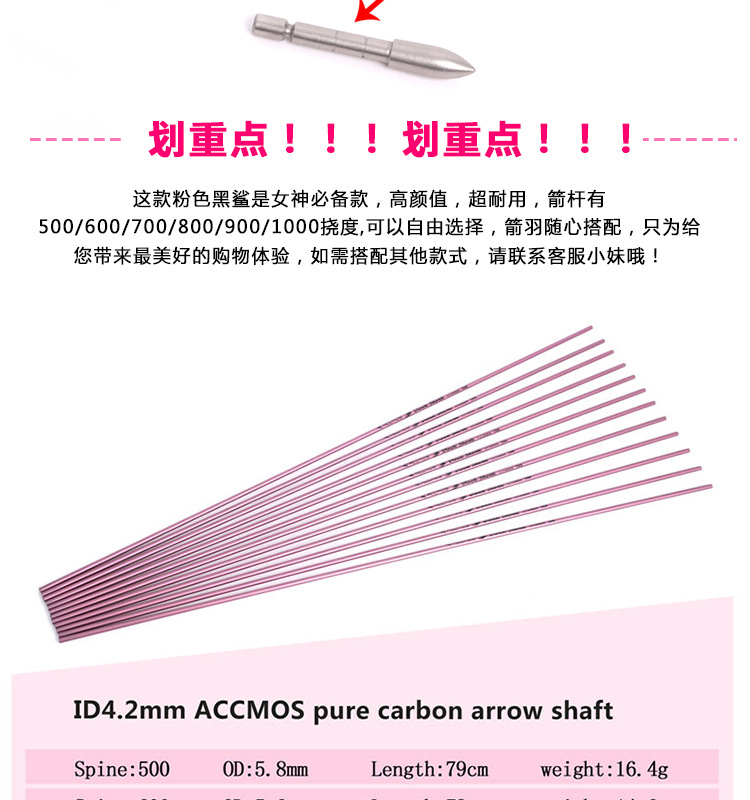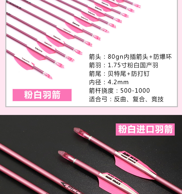 | nameOriginal | Pink 4.2 Inner Diameter Carbon Arrow export recurve bow finished arrow support a dozen of Qimei competitive 500-1000 full deflection |