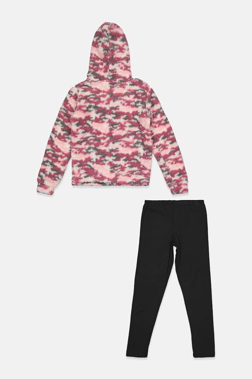 Kids Girl 2 Pieces Hoodie Graphic Print Long Sleeve Top And Plain Bottom, Pink and Black