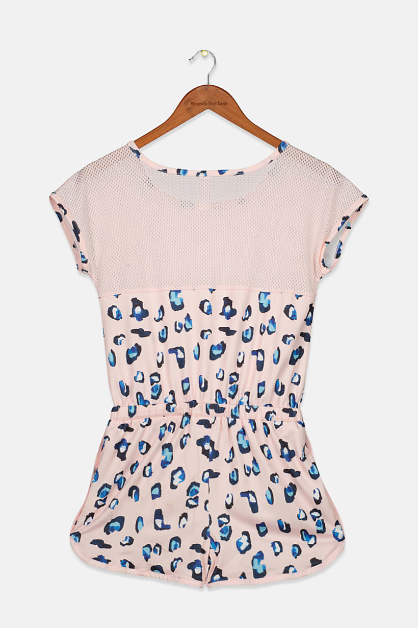| sub_Categories | Girls Fashion, Bodysuits & Rompers, kids girl allover print cap sleeve rompers pink and blue combo |