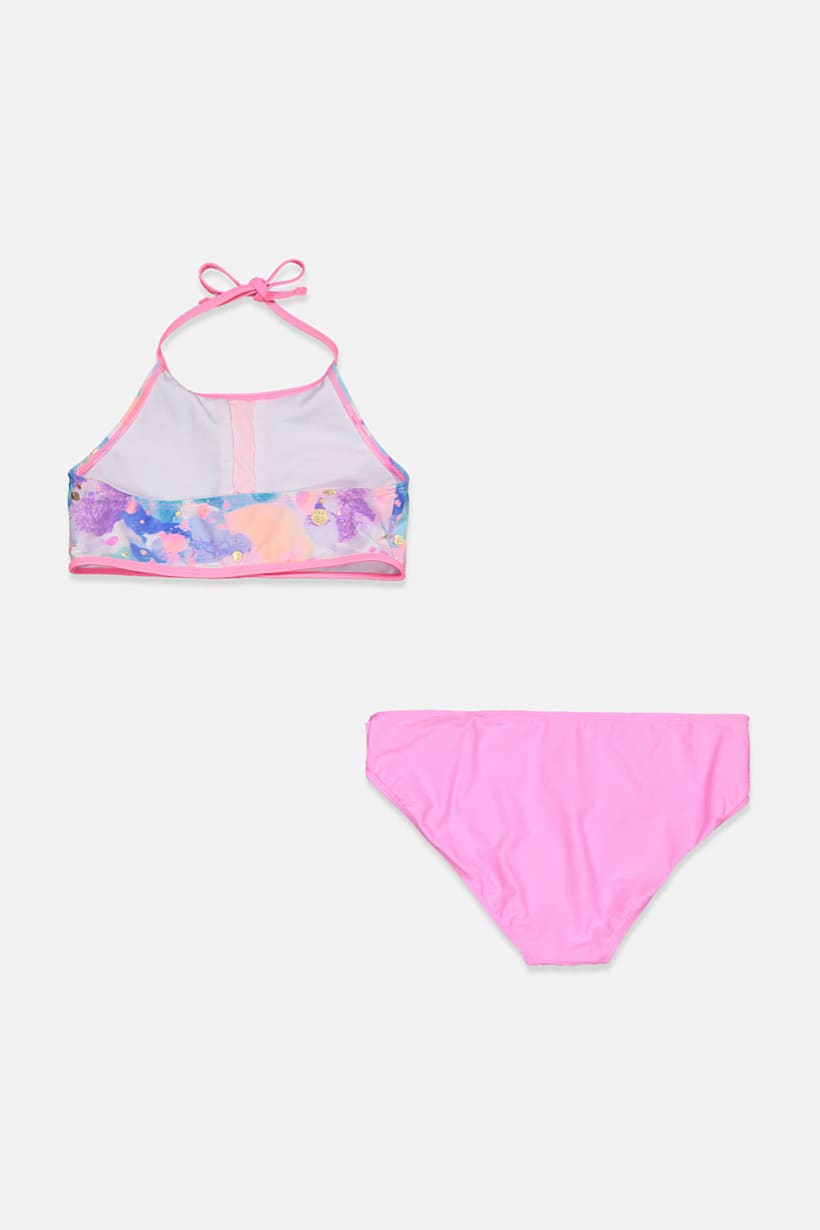 Kids Girl 2 Piece Tie Dye Bikini Top And Bottom, Pink/Blue Combo