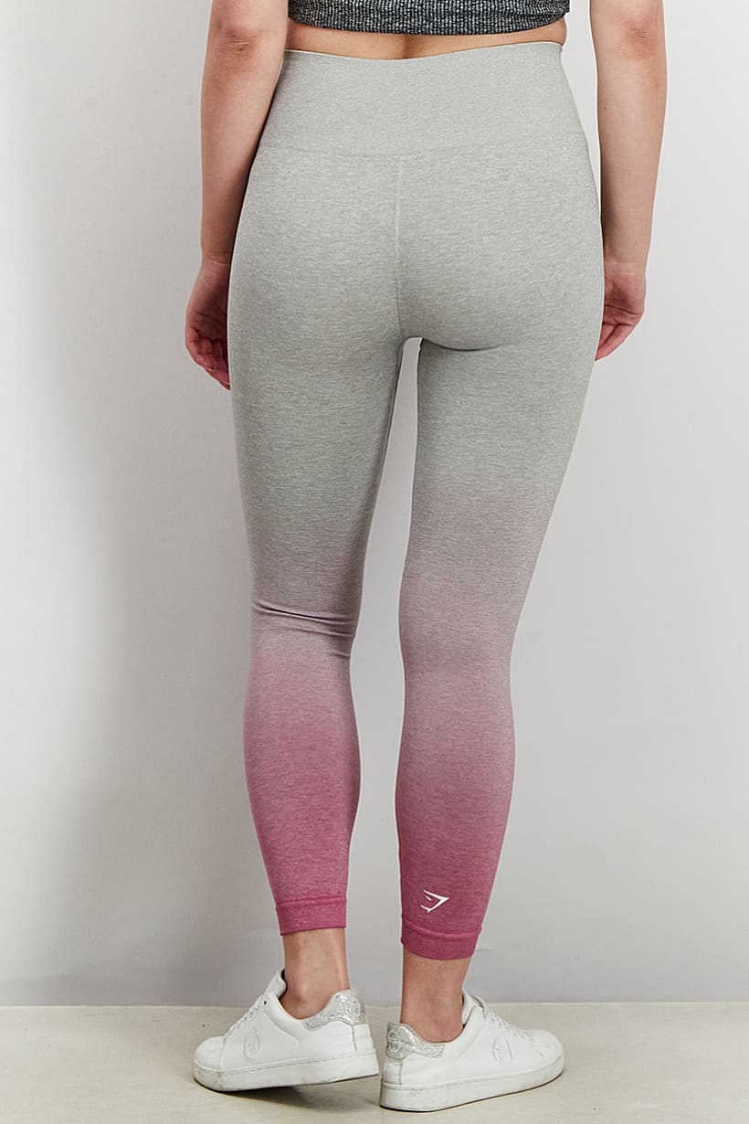 Pink and Grey Seamless Ombre Leggings for Women’s Sports Wear.