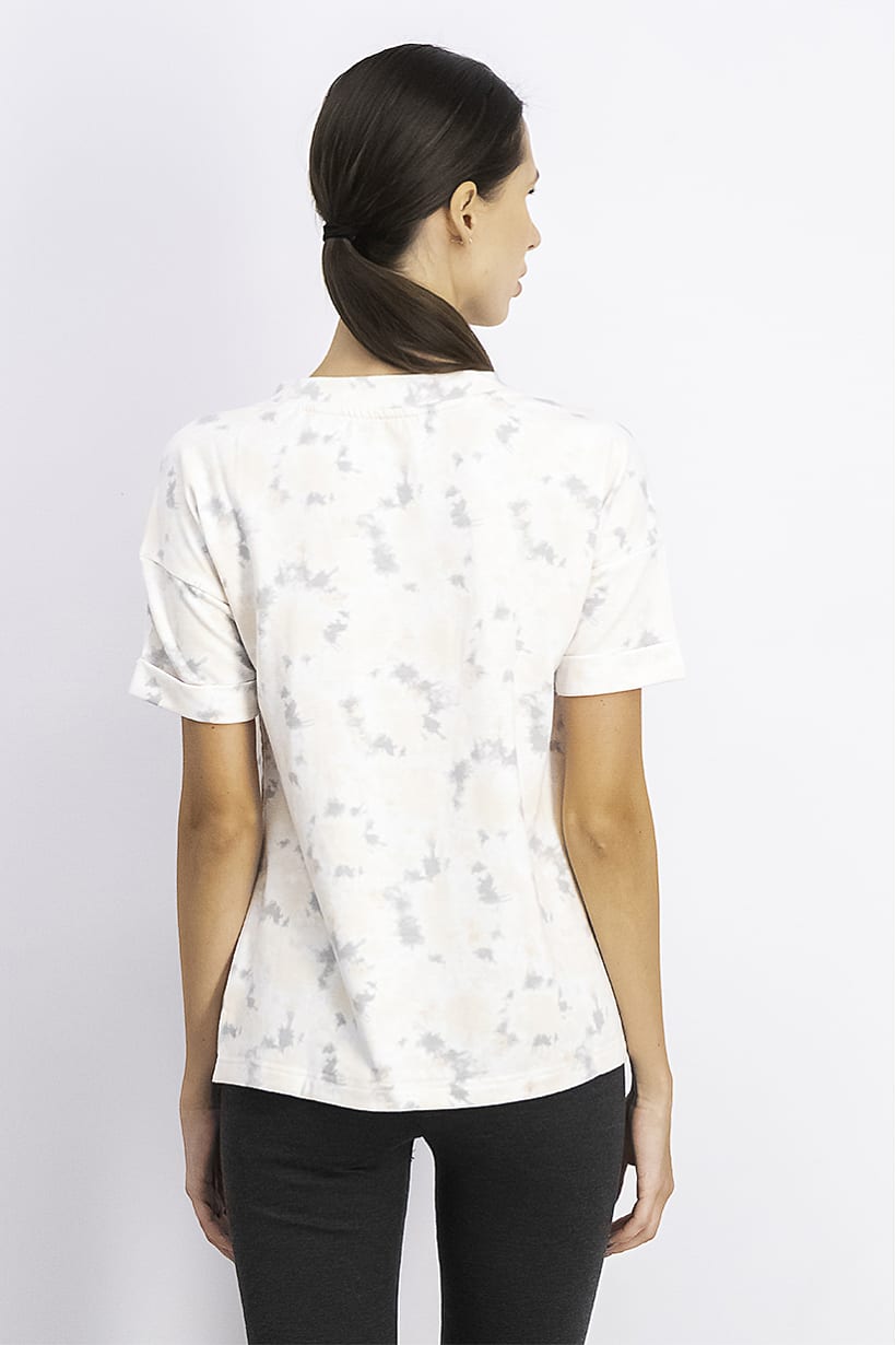 This product is easy to care for as it is machine washable. It has a sportswear fit and is available in international sizes. The fabric is light and consists of 68% polyester, 28% rayon, and 4% spandex. It is suitable for training and has a graphic print. Please note that the product color may vary slightly due to photographic lighting sources or monitor settings. The sportswear type is a t-shirt and it comes in a pink color family.