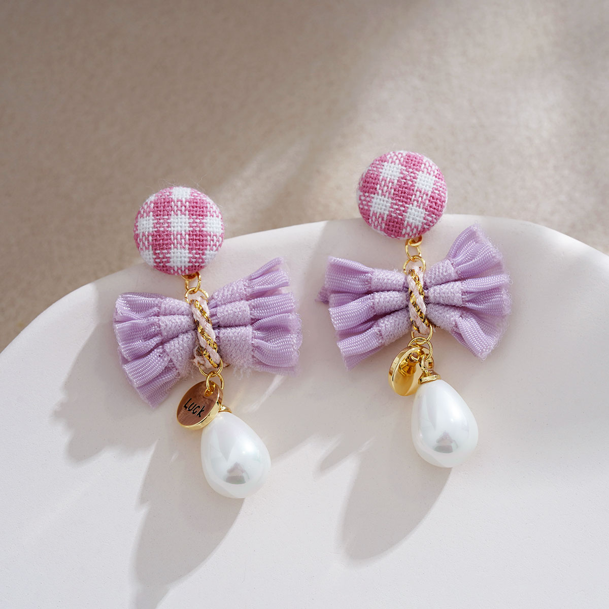 | nameOriginal | Pink and purple bow super fairy earrings special design water drop pearl gentle earrings niche summer earrings for women |