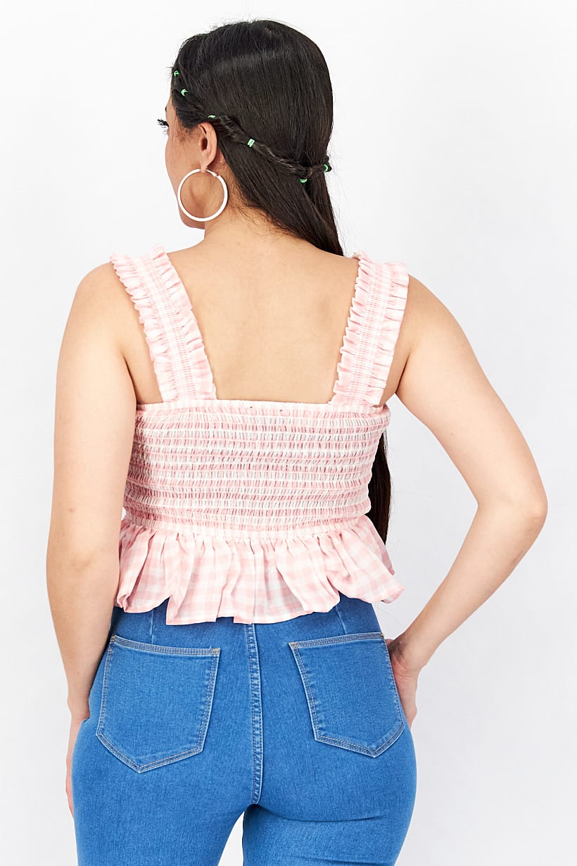 | sub_Categories | Women Clothing, Tops & Tees, women square neck sleeveless checkered crop top pink white |