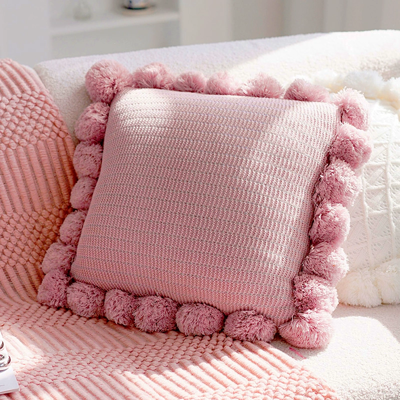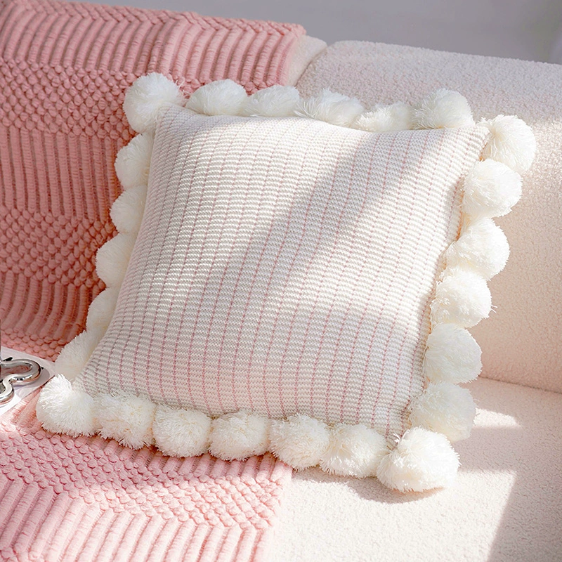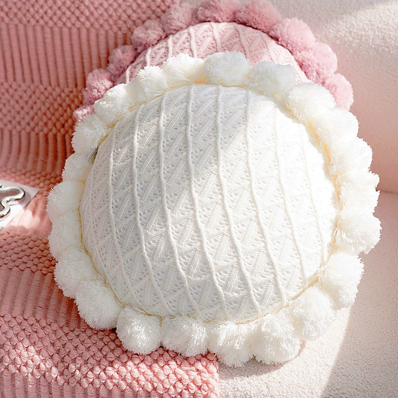 | nameOriginal | Pink and white knitted tassel small fresh pillowcase ins style sofa living room pillow round waist cushion cute |
