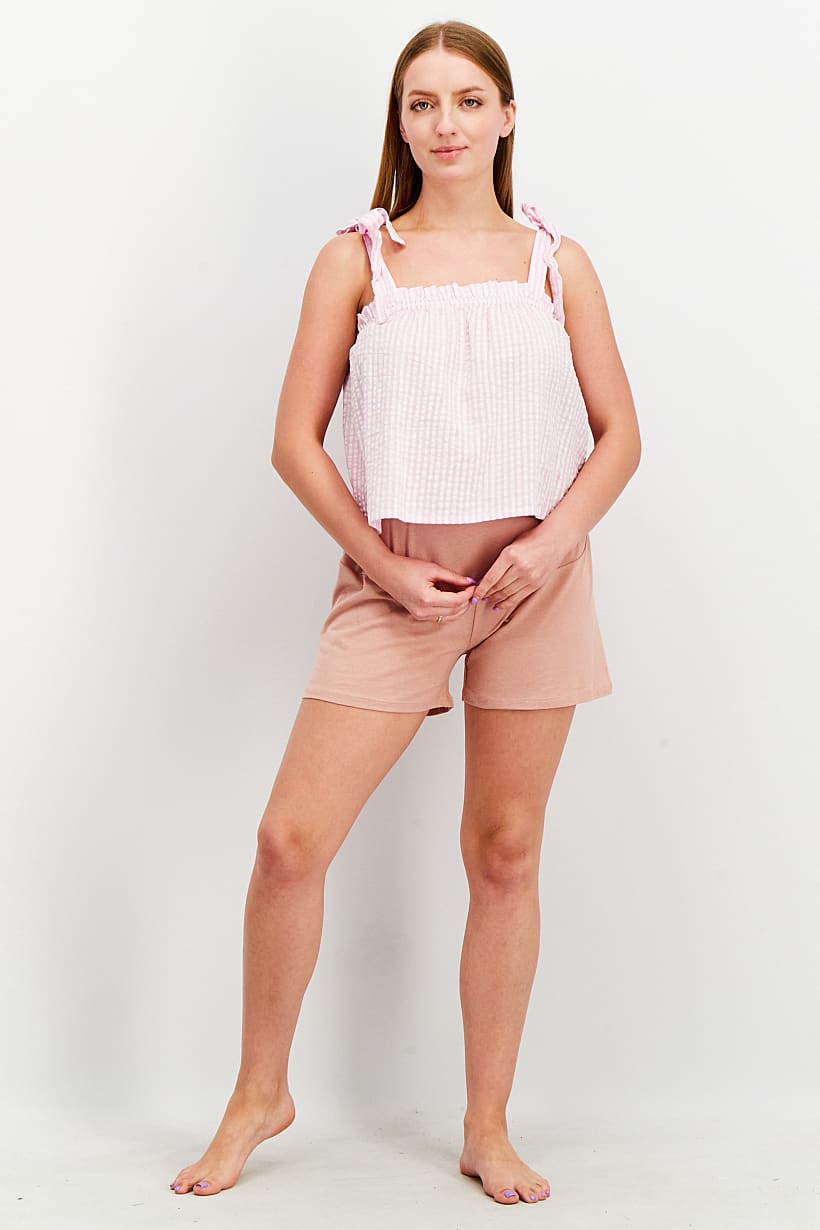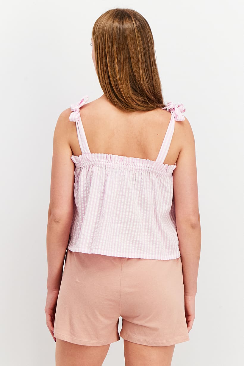 | nameOriginal | Women Gingham Pattern Sleeveless Pajama Top, Pink/White |