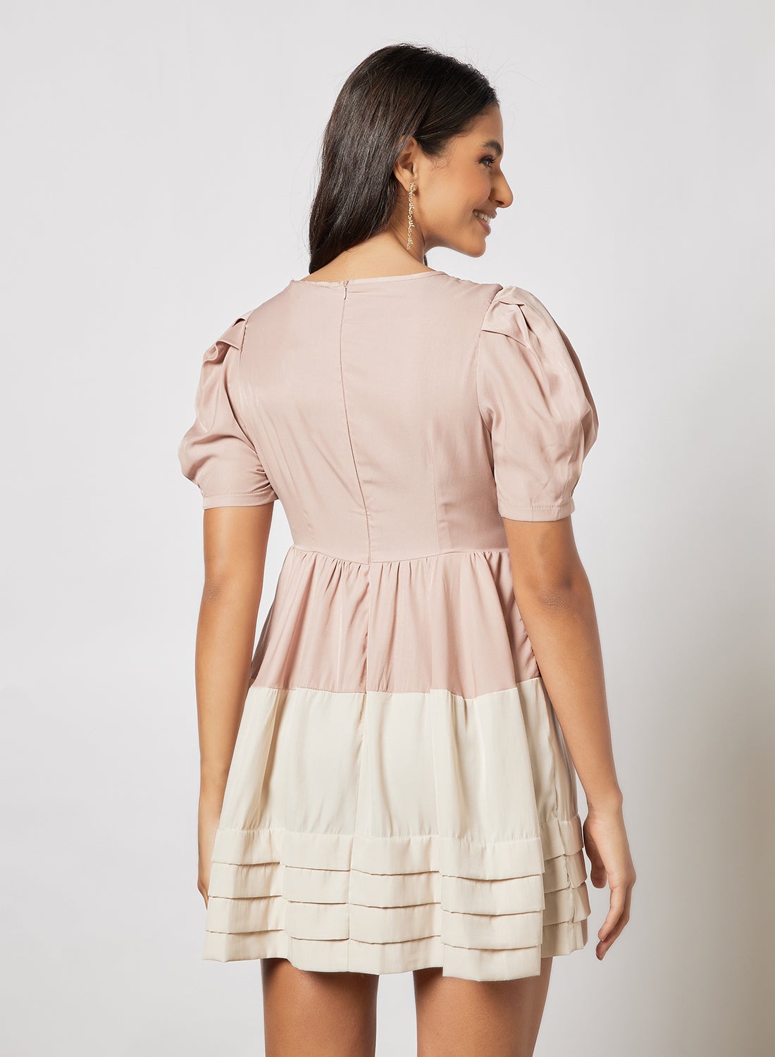 | nameOriginal | Casual Polyester Puff Short Sleeve Mini Colourblock Dress Flared Hem With Square Neck Pink/White |