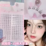 Pink baby 15 rows large capacity! Sunflower false eyelashes for women natural simulation extremely fine soft stems single cluster three pieces