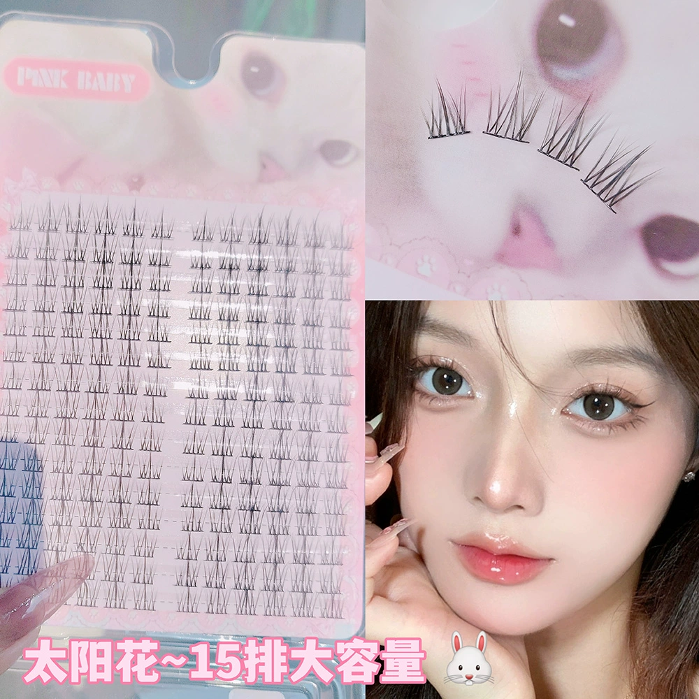 Pink baby 15 rows large capacity! Sunflower false eyelashes for women natural simulation extremely fine soft stem single cluster three pieces