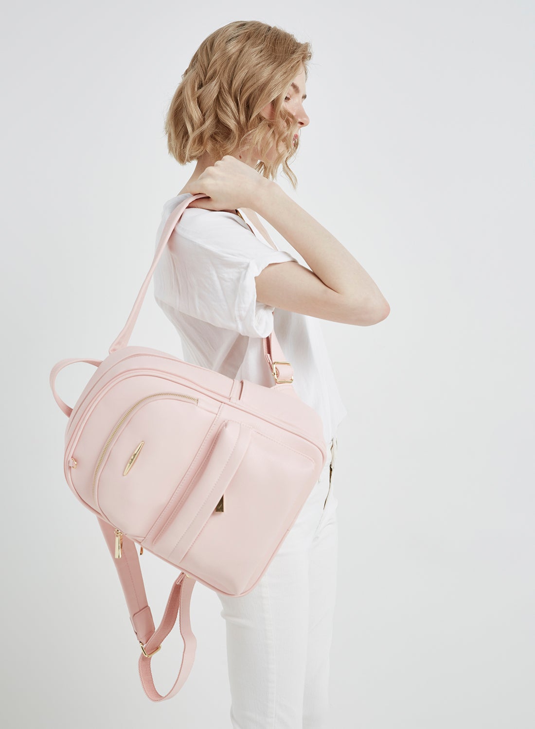 Introducing our stylish and versatile Faux Leather Backpack in Pink! This backpack is the perfect accessory for any fashion-forward individual who wants to add a pop of color to their outfit. Made from high-quality faux leather, this backpack is durable and easy to clean, making it perfect for everyday use. The spacious main compartment is perfect for carrying all your essentials, while the front zippered pocket provides easy access to your phone, keys, and other small items. The adjustable straps ensure a comfortable fit, making it easy to wear all day long. Whether you’re heading to work, school, or a weekend getaway, this Faux Leather Backpack in Pink is the perfect choice for any occasion.