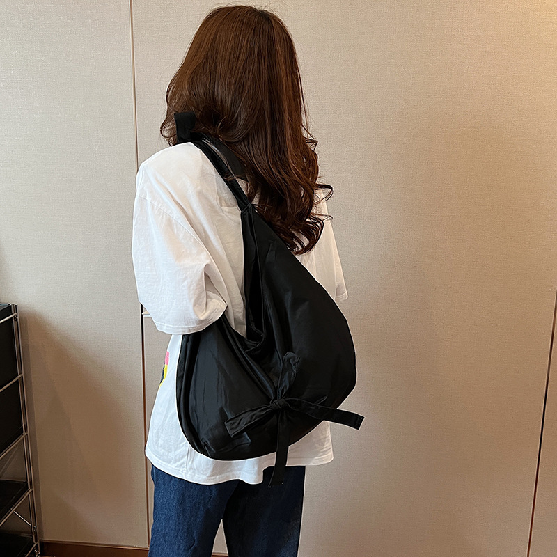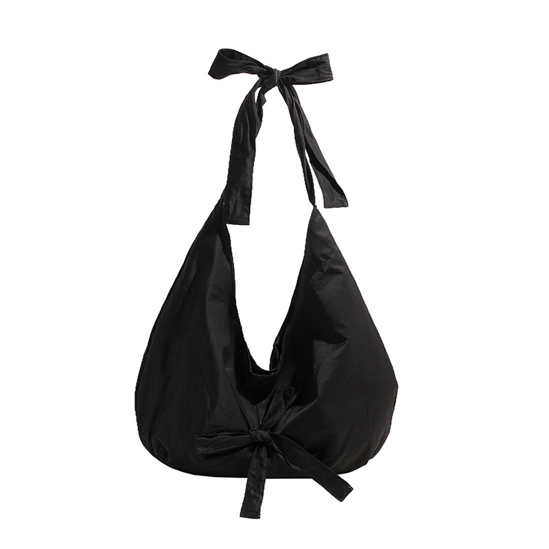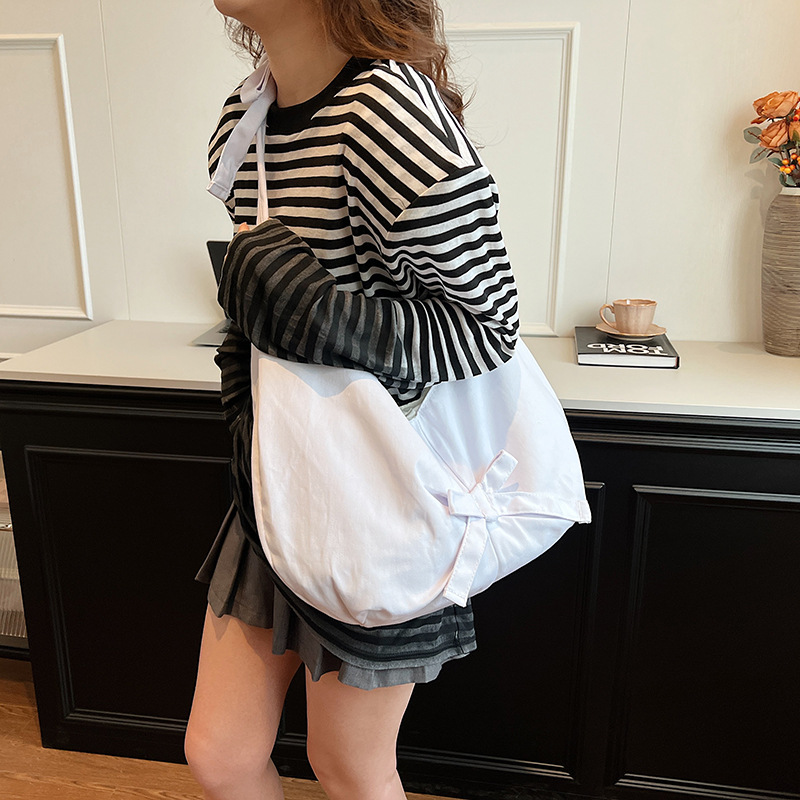 Pink Bow Canvas Underarm Bag Retro Casual Large Capacity Tote Shoulder Bag Handbag Commuter Crossbody Bag