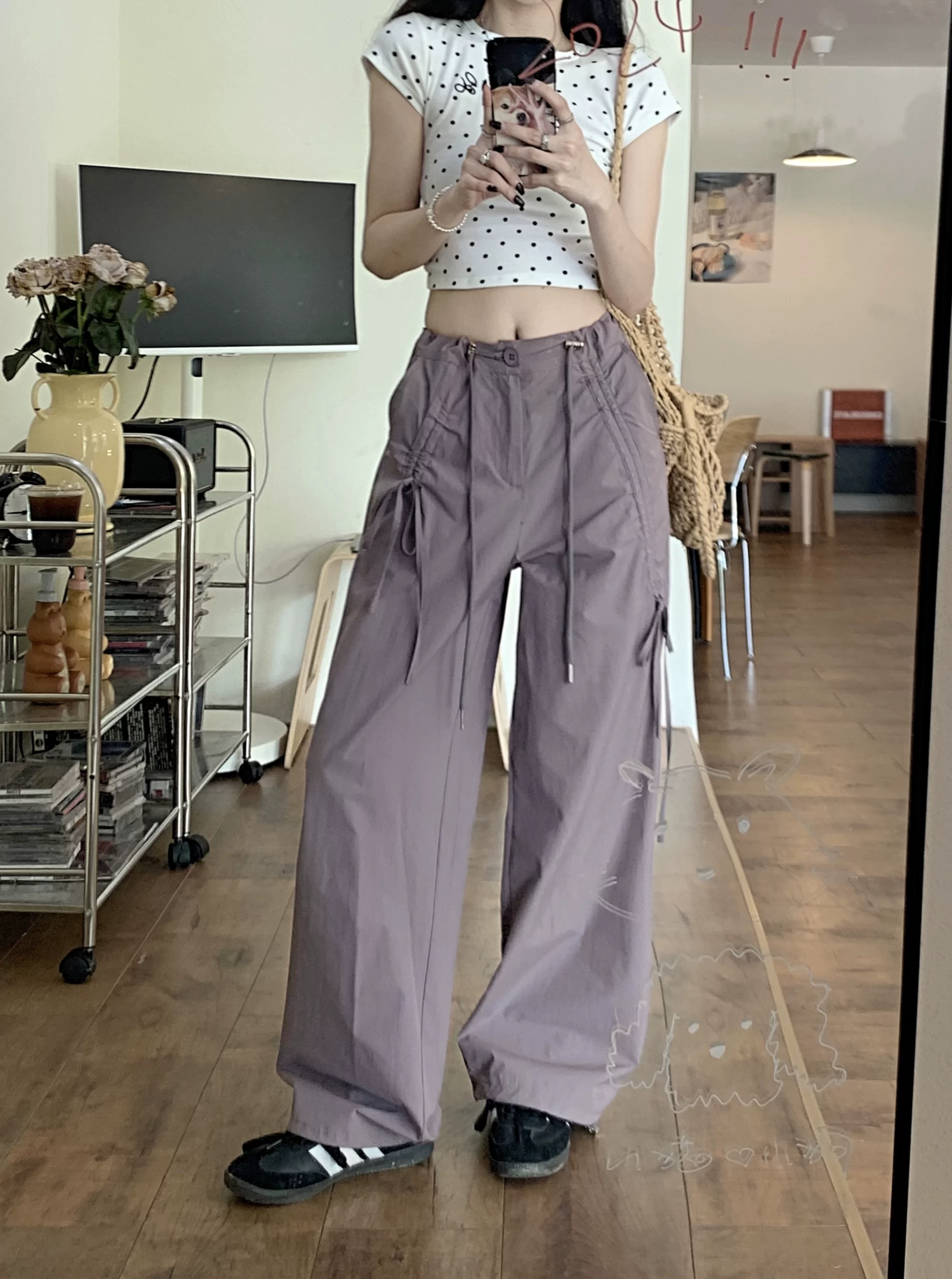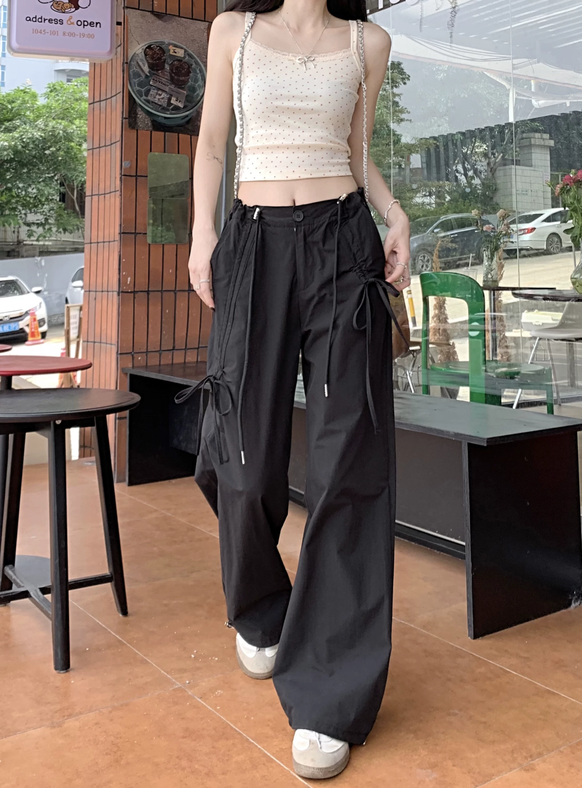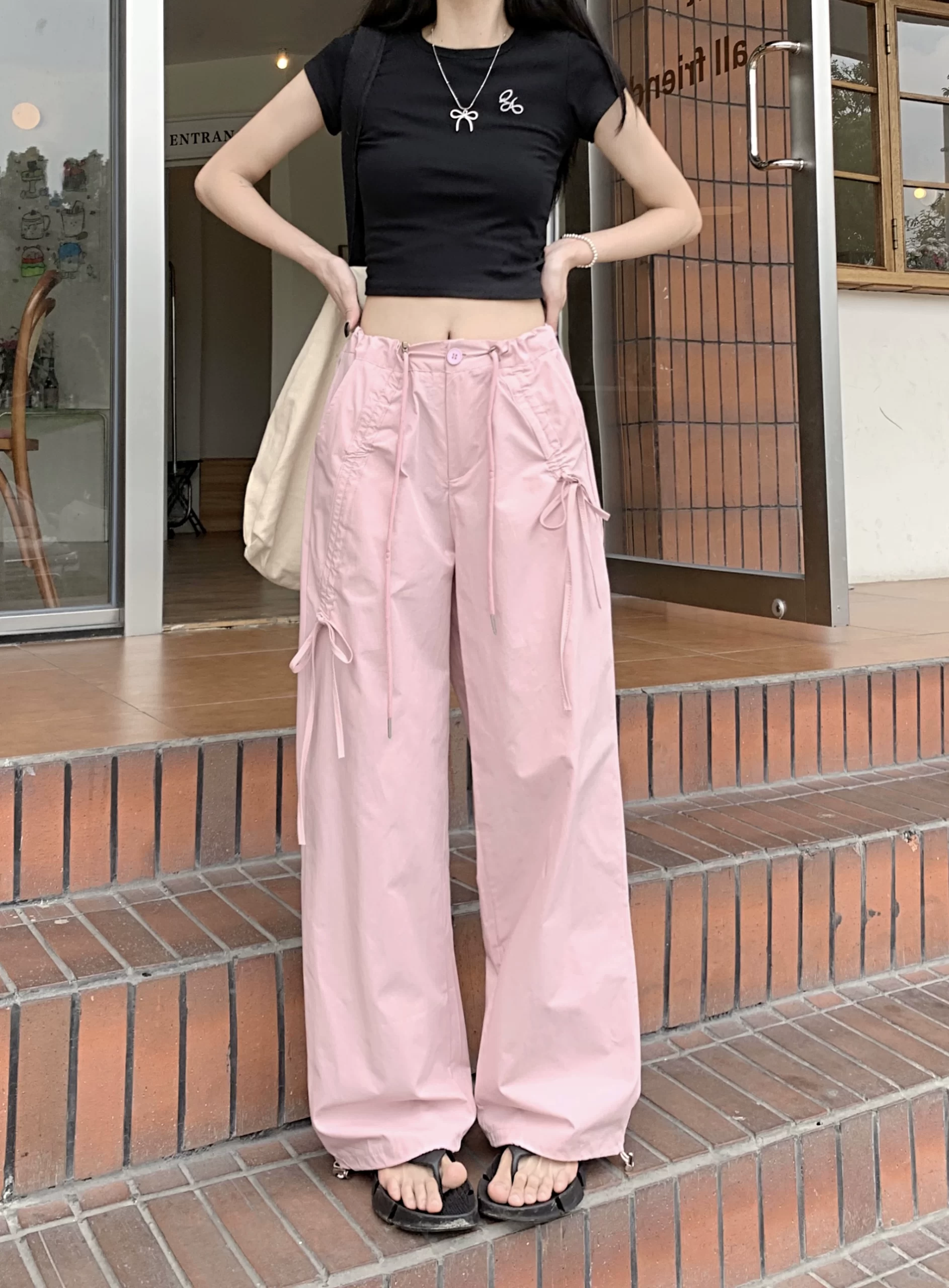 | nameOriginal | Pink bow high-waisted loose floor-length trousers overalls |