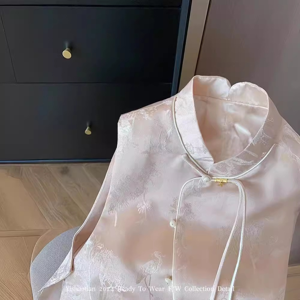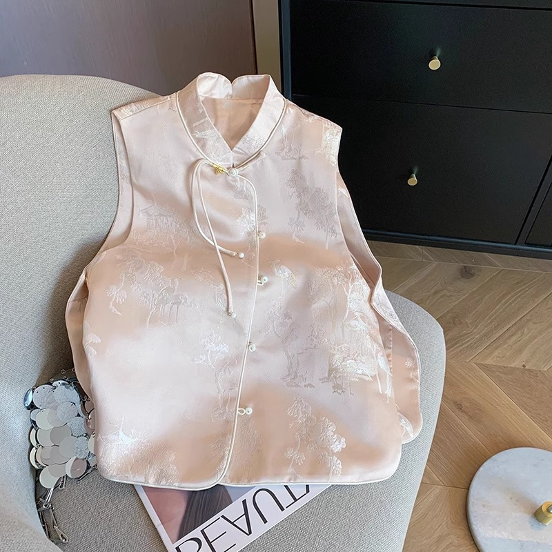 | nameOriginal | Pink buckle stand collar Crane National style Vest Women's sleeveless waistcoat jacquard vest Song Jin Chinese style top spring |