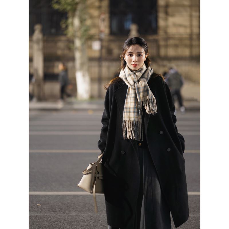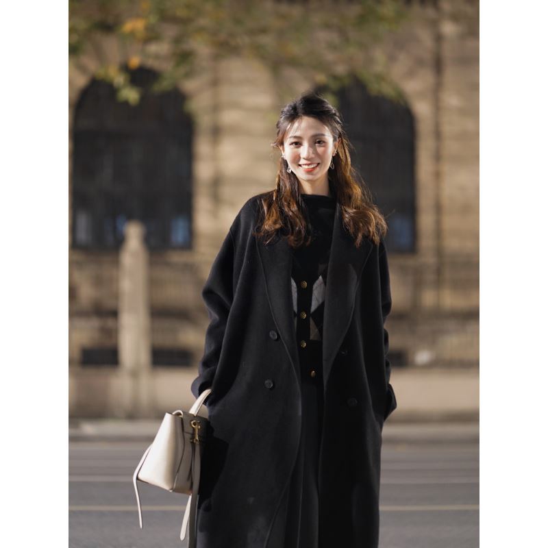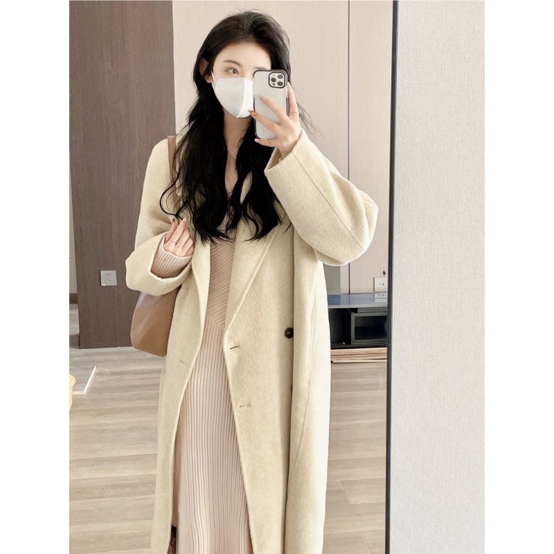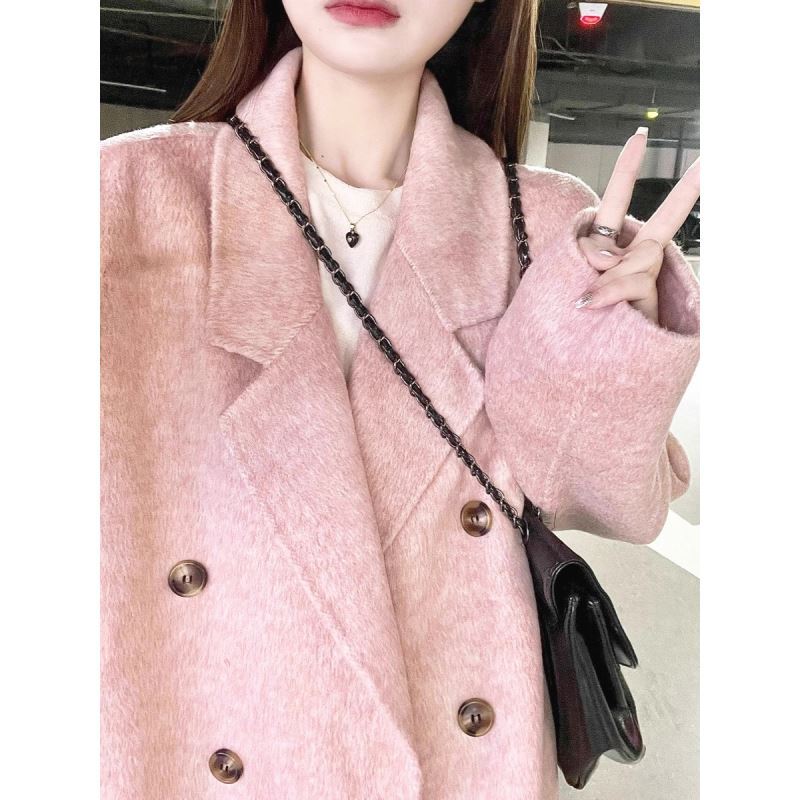 Pink Cashmere Woolen Coat Women’s Mid-Length 2023 Autumn and Winter New Elegant Korean Woolen Coat for Small People