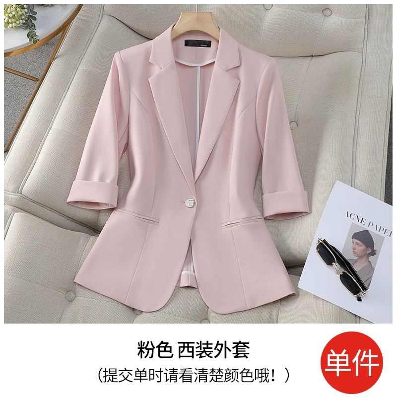 Pink casual temperament thin seven -point sleeve suit jacket
