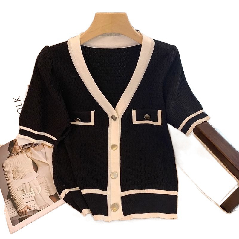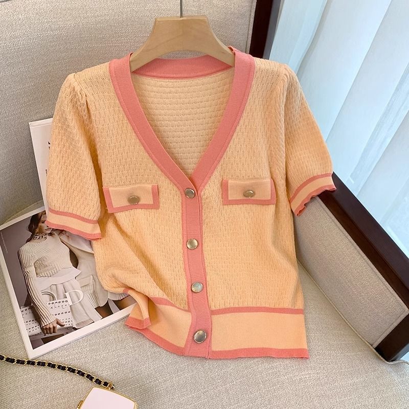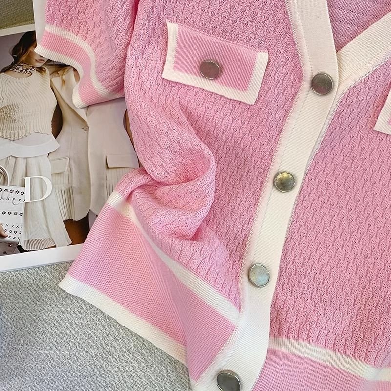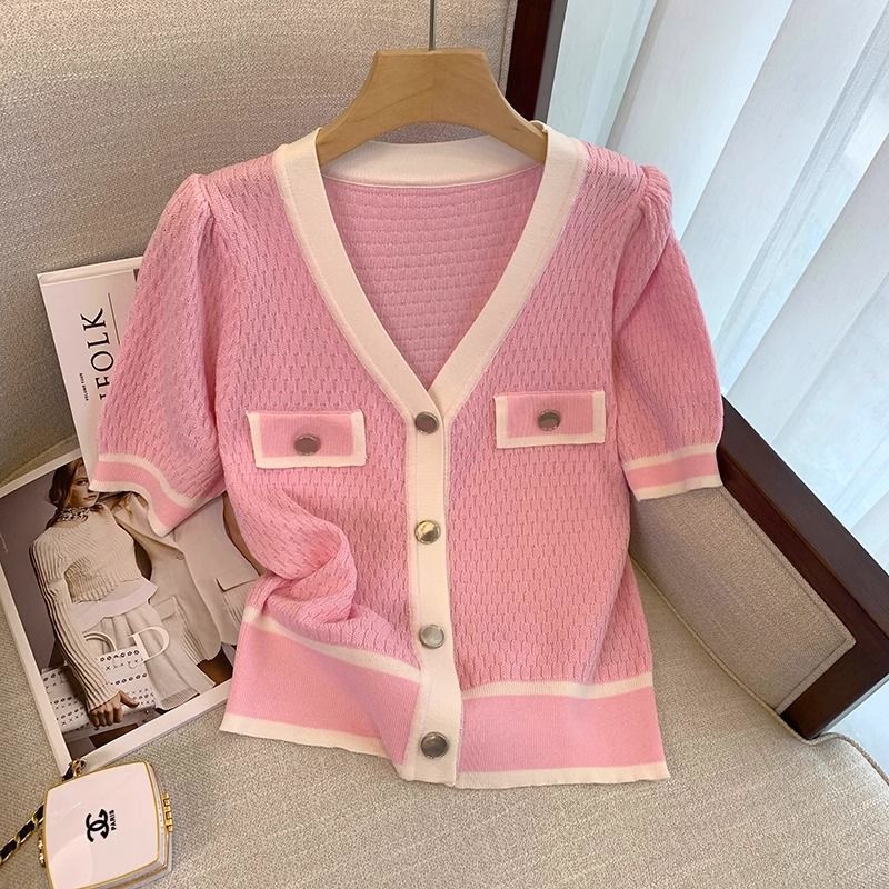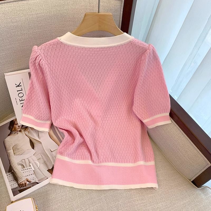 Pink Chanel Style Short-sleeved Ice Silk Knitted Sweater Thin Women’s Summer New French Short Top
