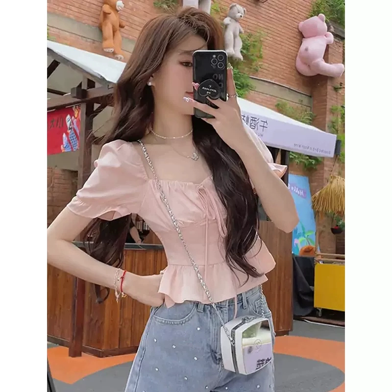 | nameOriginal | Pink chiffon sweet high waist hot girl short sleeve top |