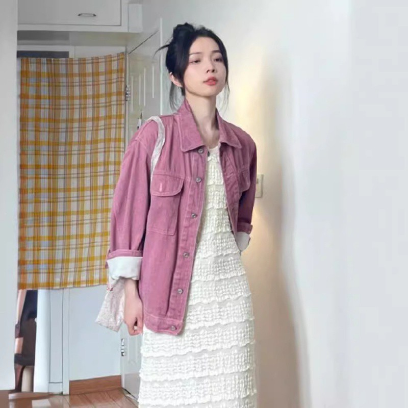 | nameOriginal | Pink Coat Women's Spring 2023 New Internet Celebrous American Style Retro High-end Sense Early Autumn Denim Jacket for Small Men |