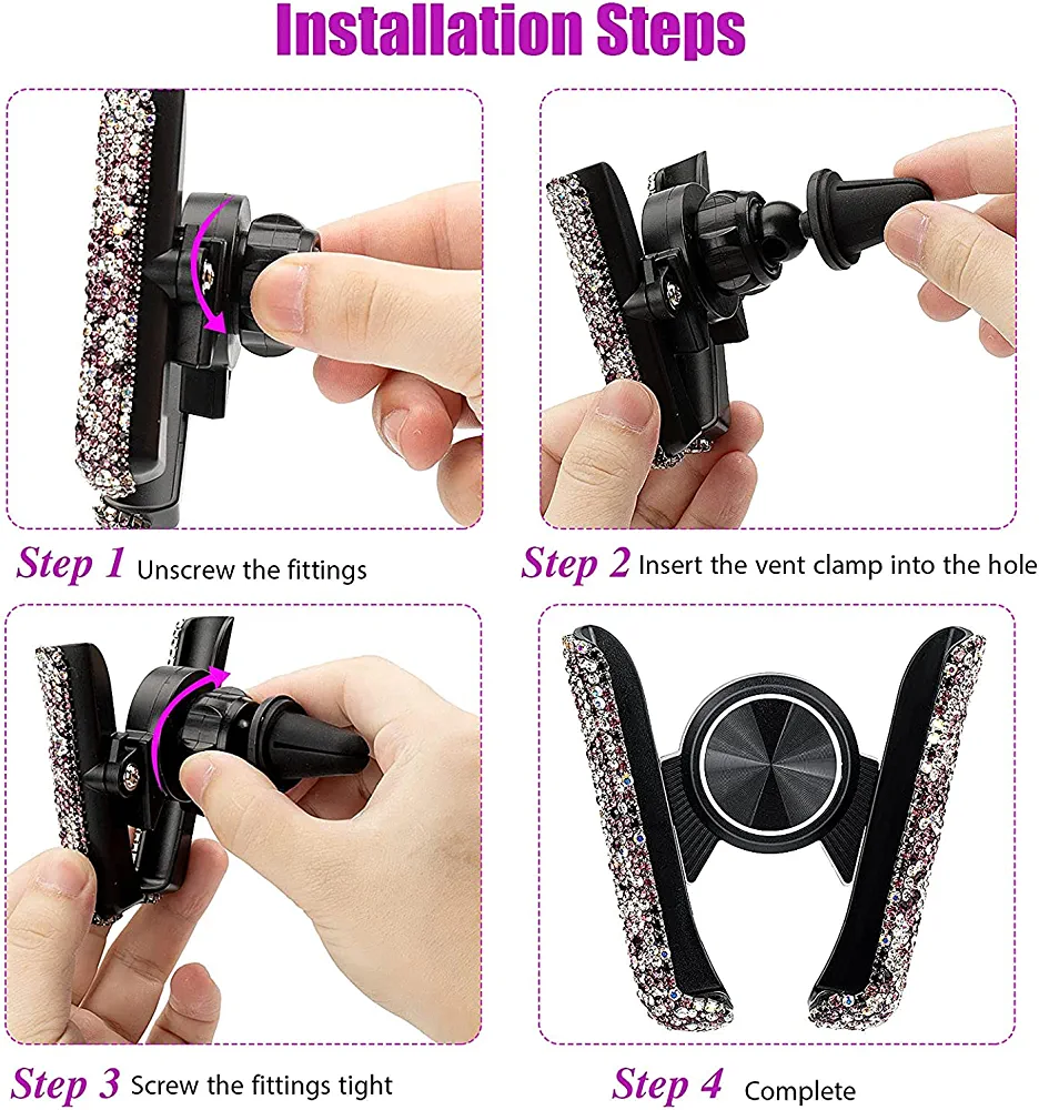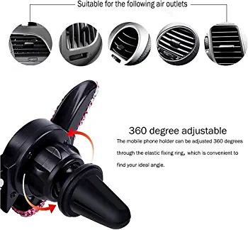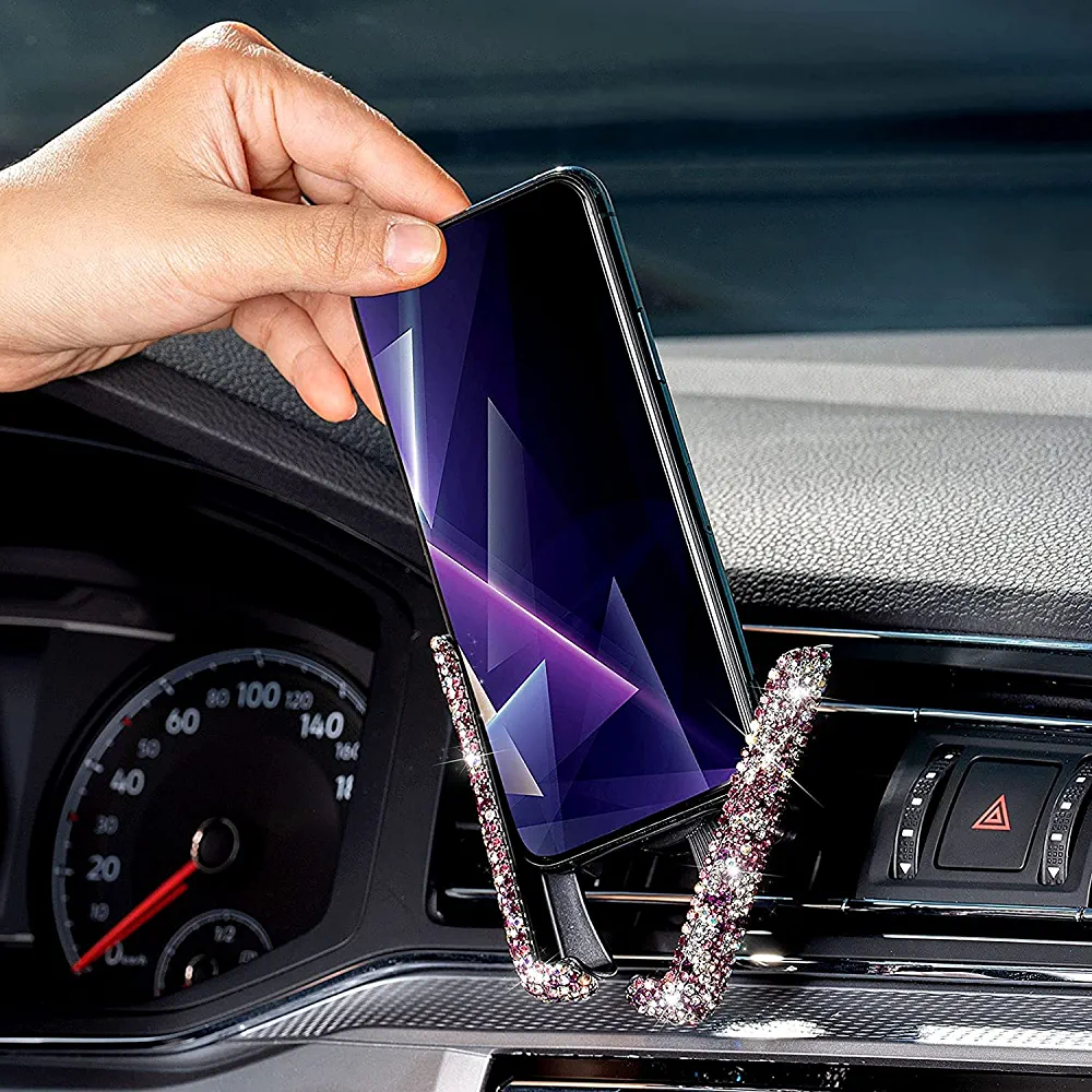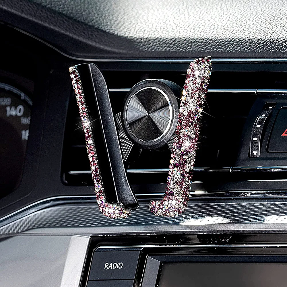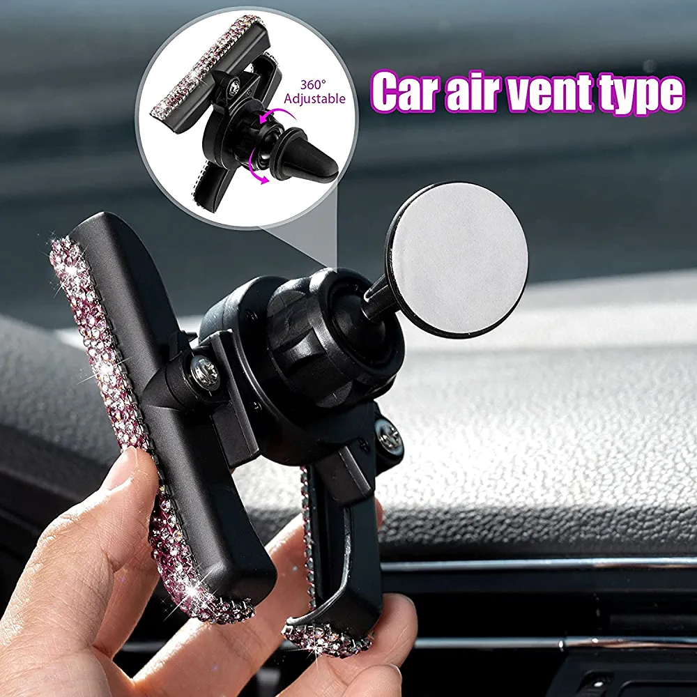 | nameOriginal | Bling Car Phone Holder Mini Car Dash Air Vent Automatic Phone Mount Universal, 360°Adjustable and Stable Triangle Support, Crystal Auto Car Stand Phone Holder Accessories for Women and Girls (Pink) |