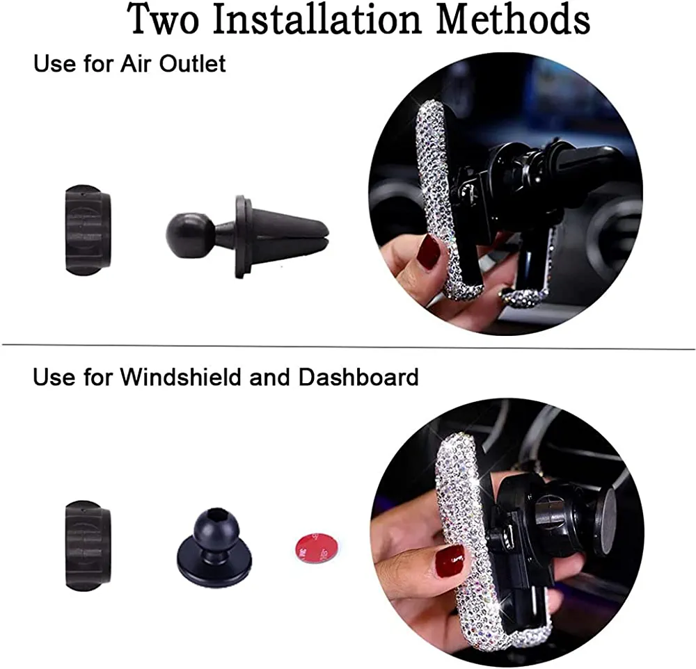 Introducing the Bling Car Phone Holder Mini Car Dash Air Vent Automatic Phone Mount Universal, the perfect accessory for any stylish woman or girl on the go. This phone holder is designed to keep your phone secure and easily accessible while driving, with a 360° adjustable and stable triangle support that ensures your phone stays in place even on bumpy roads. The crystal auto car stand adds a touch of glamour to your car’s interior, while the pink color is perfect for those who love a pop of color. The holder can be easily mounted on your car’s dash or air vent, making it a versatile option for any vehicle. Say goodbye to fumbling with your phone while driving and hello to a safer, more convenient driving experience with the Bling Car Phone Holder Mini Car Dash Air Vent Automatic Phone Mount Universal.