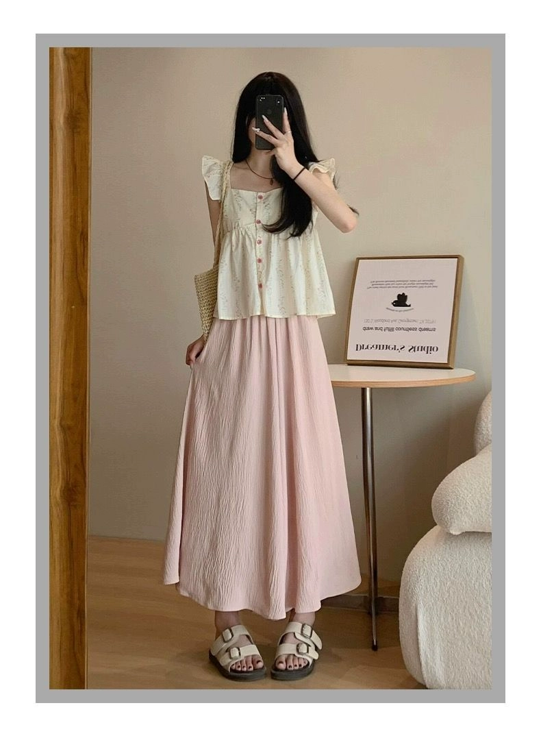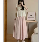 | nameOriginal | Pink culottes for women, summer thin, small, pleated A-line skirt, cotton and linen high-waisted straight drapey wide-leg pants |