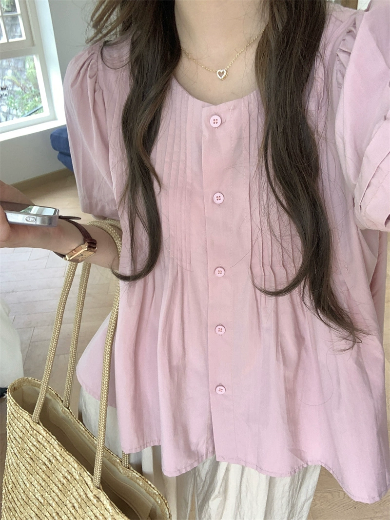 | nameOriginal | Pink design loose short-sleeved top for petites |