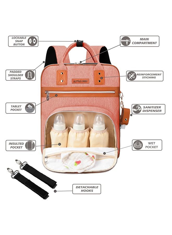 Introducing the ultimate solution for busy moms on-the-go – the 2 In 1 Diaper Bag with Sanitizer Bottle keychain And Stroller Hooks in Pink! This stylish and functional diaper bag is designed to make your life easier and more organized. With its spacious compartments and multiple pockets, you can easily store all your baby essentials, including diapers, wipes, bottles, and more.