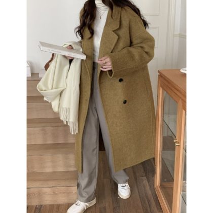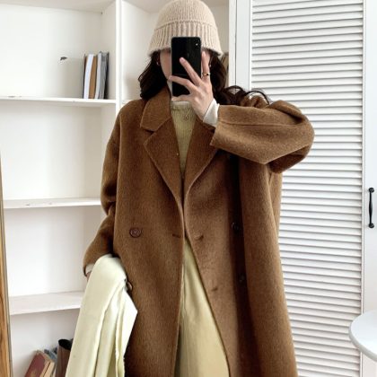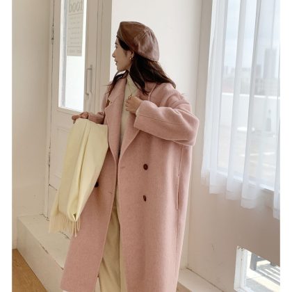 | nameOriginal | Pink double-sided cashmere coat Women's Mid-length 2023 new autumn and winter loose plus size Korean woolen coat |