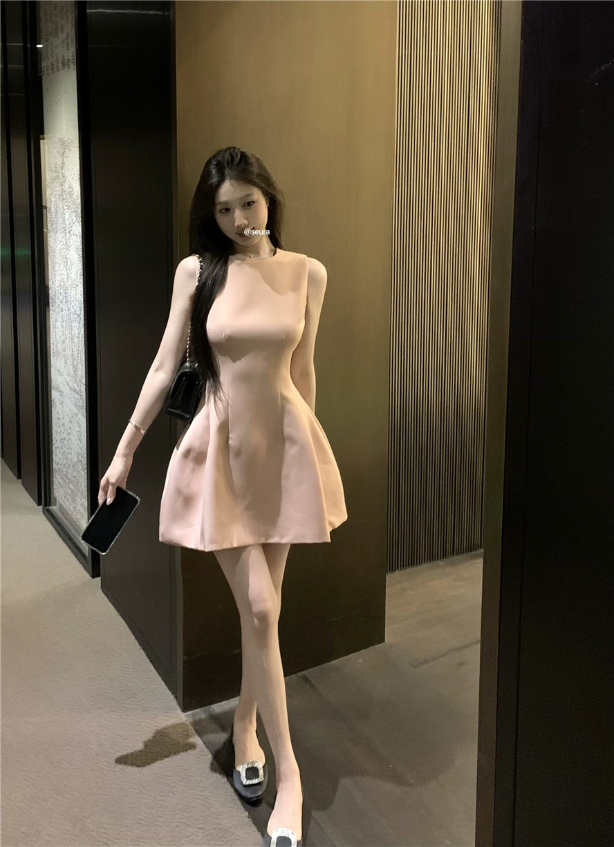 Pink Dress Summer Slim Round Neck A-Line Vest