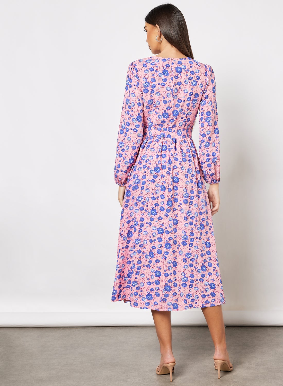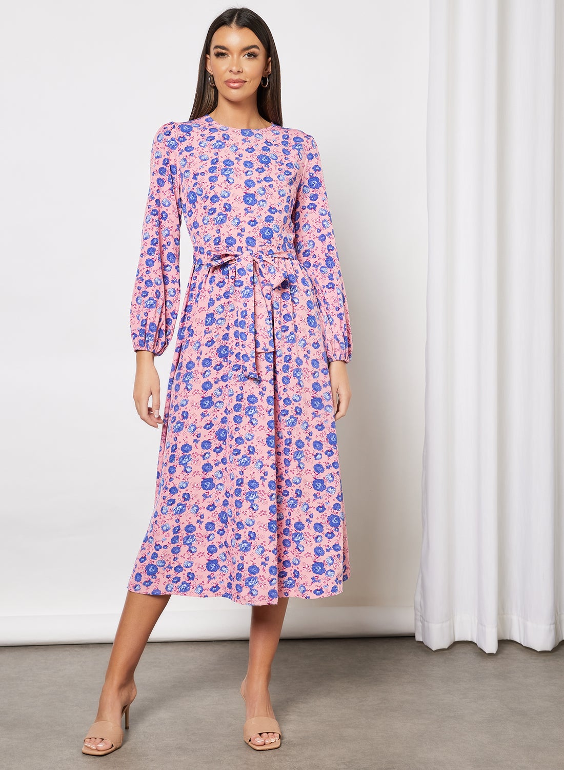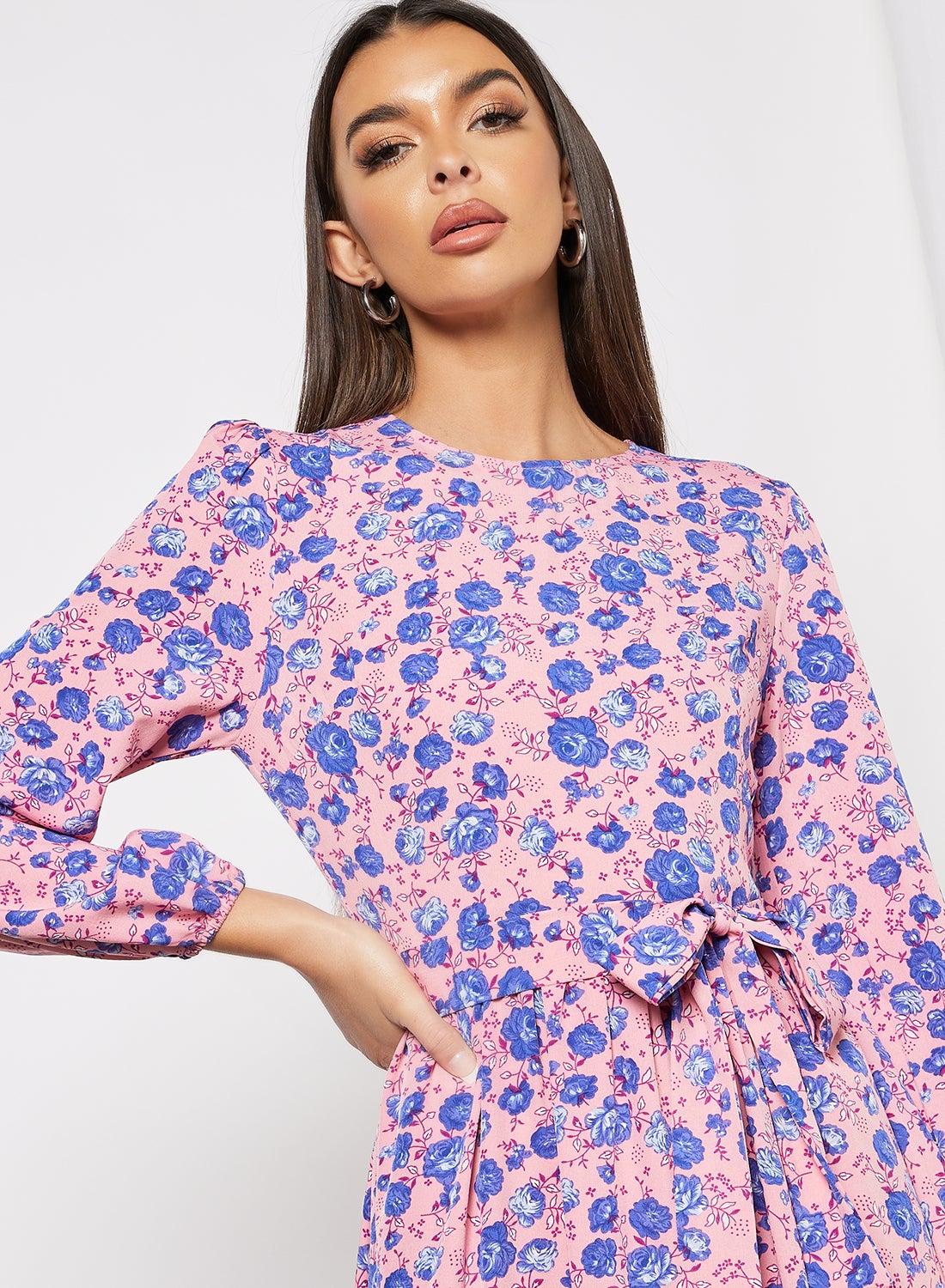 | nameOriginal | All Print Puff Sleeve Self Tie Side Split Dress Pink |