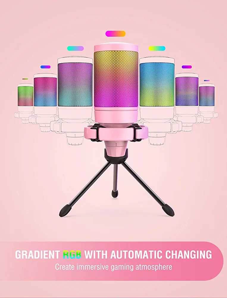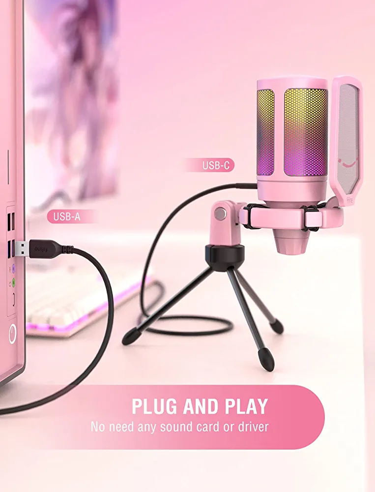 | nameOriginal | FIFINE USB Gaming PC Microphone for Streaming Podcasts, AmpliGame RGB Computer Condenser Desktop Mic, Cardioid Pattern for YouTube Video, Plug and Play on PS4 PS5, with Quick Mute, Mic Gain-A6V Pink |