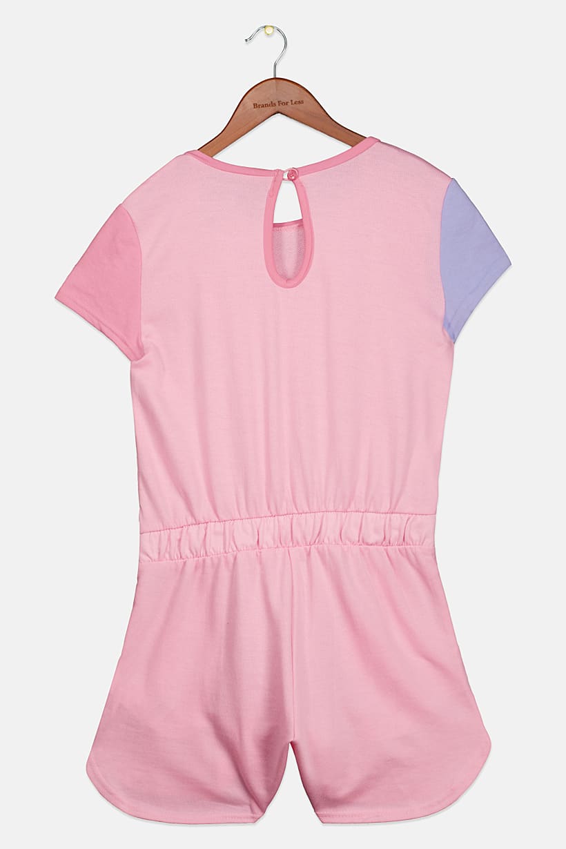 | descriptionOriginal | Care : Machine washable, Ideal For : Girls, Sleeve Length : Short Sleeve, Type of Sport : Walking, Types of Hem : Straight hem, Disclaimer : Product color may slightly vary due to photographic lighting sources or your monitor settings., Fabrics : 60% Cotton, 40% Polyester, Occasion : Casual, Pattern & Print : Brand Logo, Sportswear Type : Jumpsuit, Color Family : Pink, |