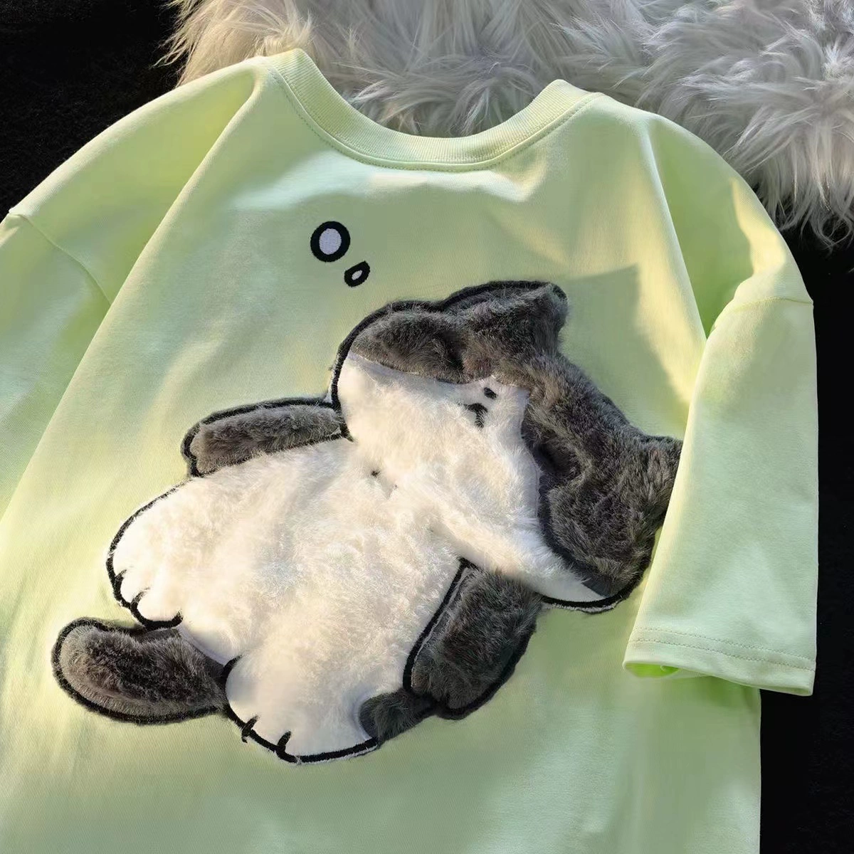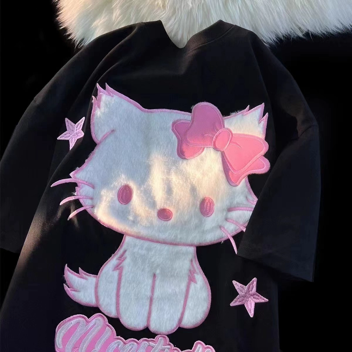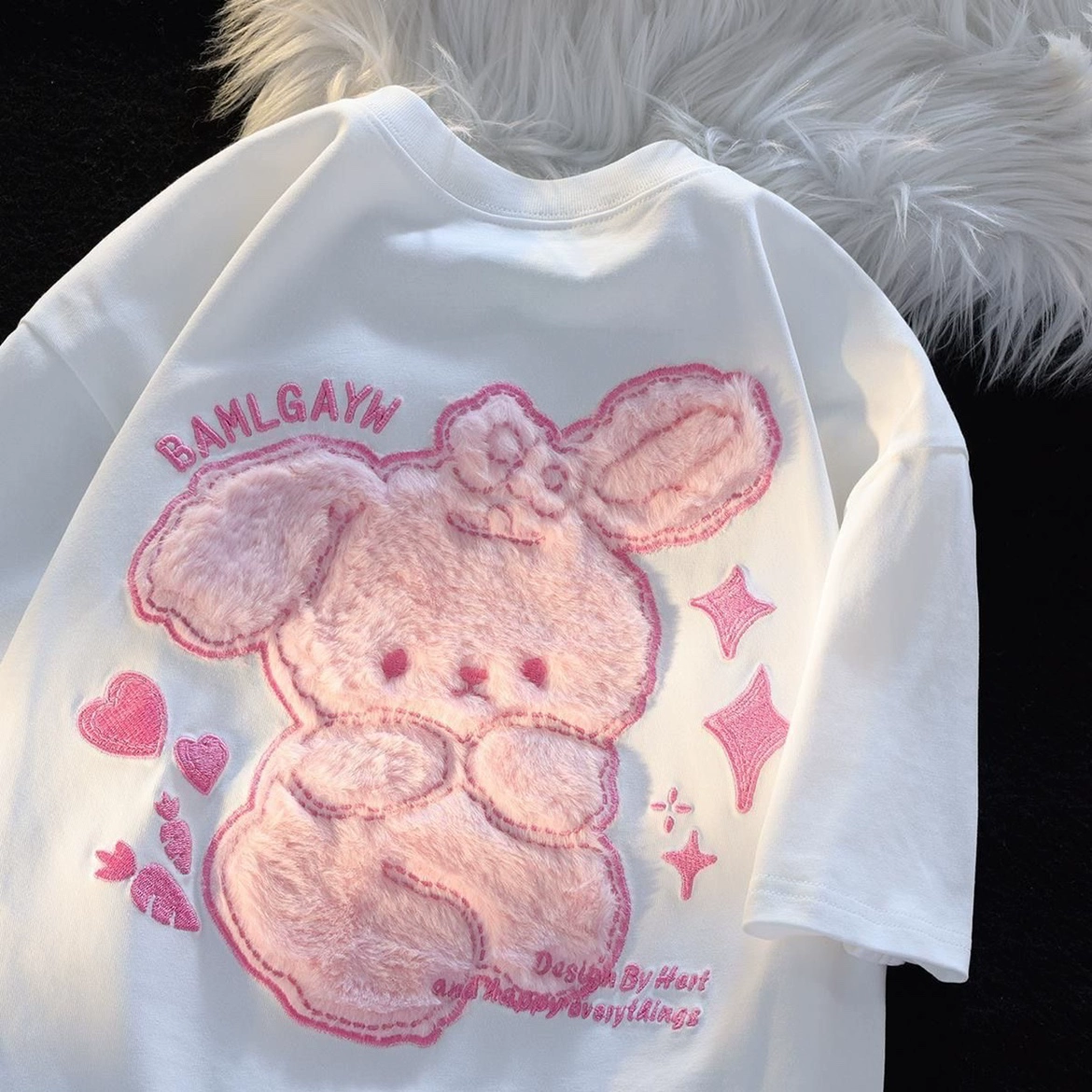 | nameOriginal | Pink flocked pure cotton ins design half-sleeve cartoon |