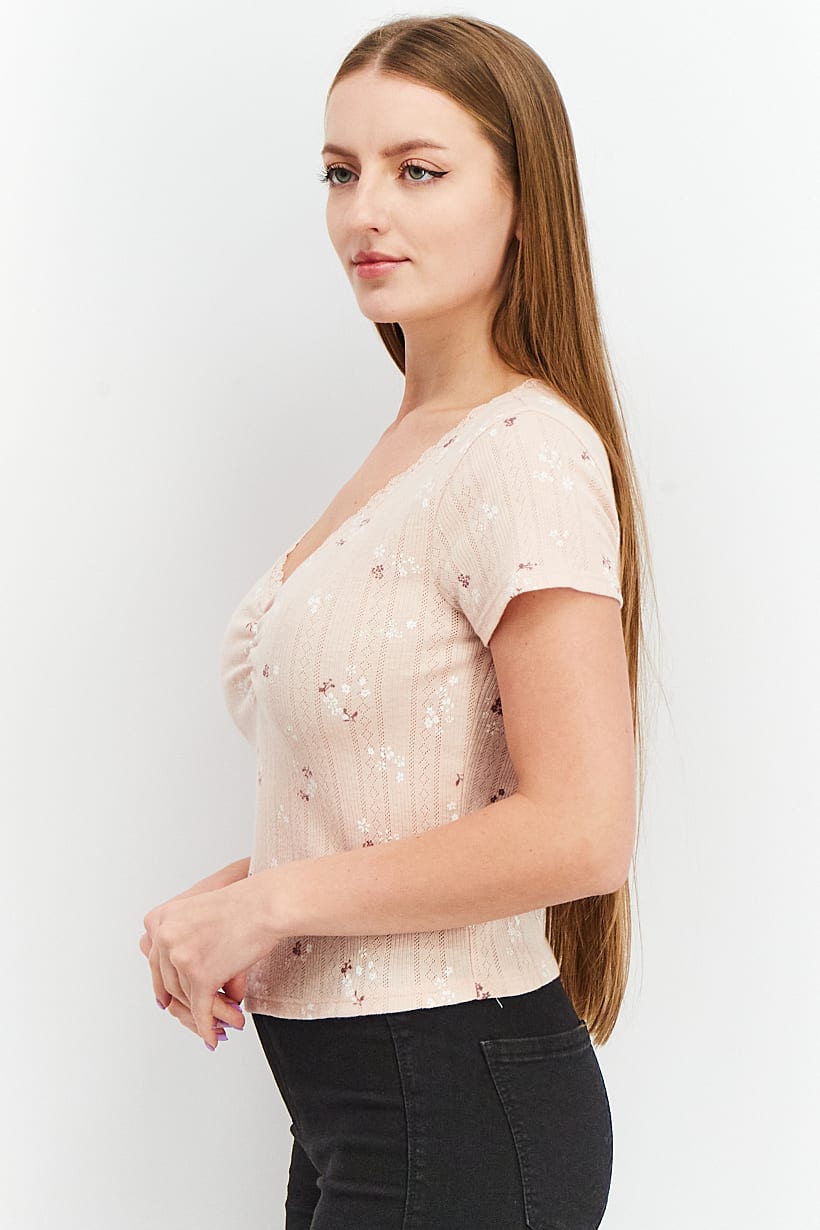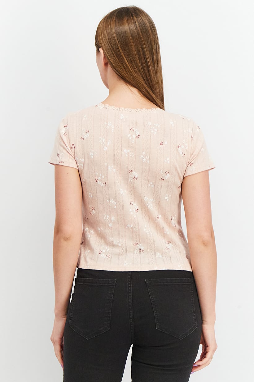 | nameOriginal | Women Juniors V-neck Short Sleeves Floral Top, Pink |