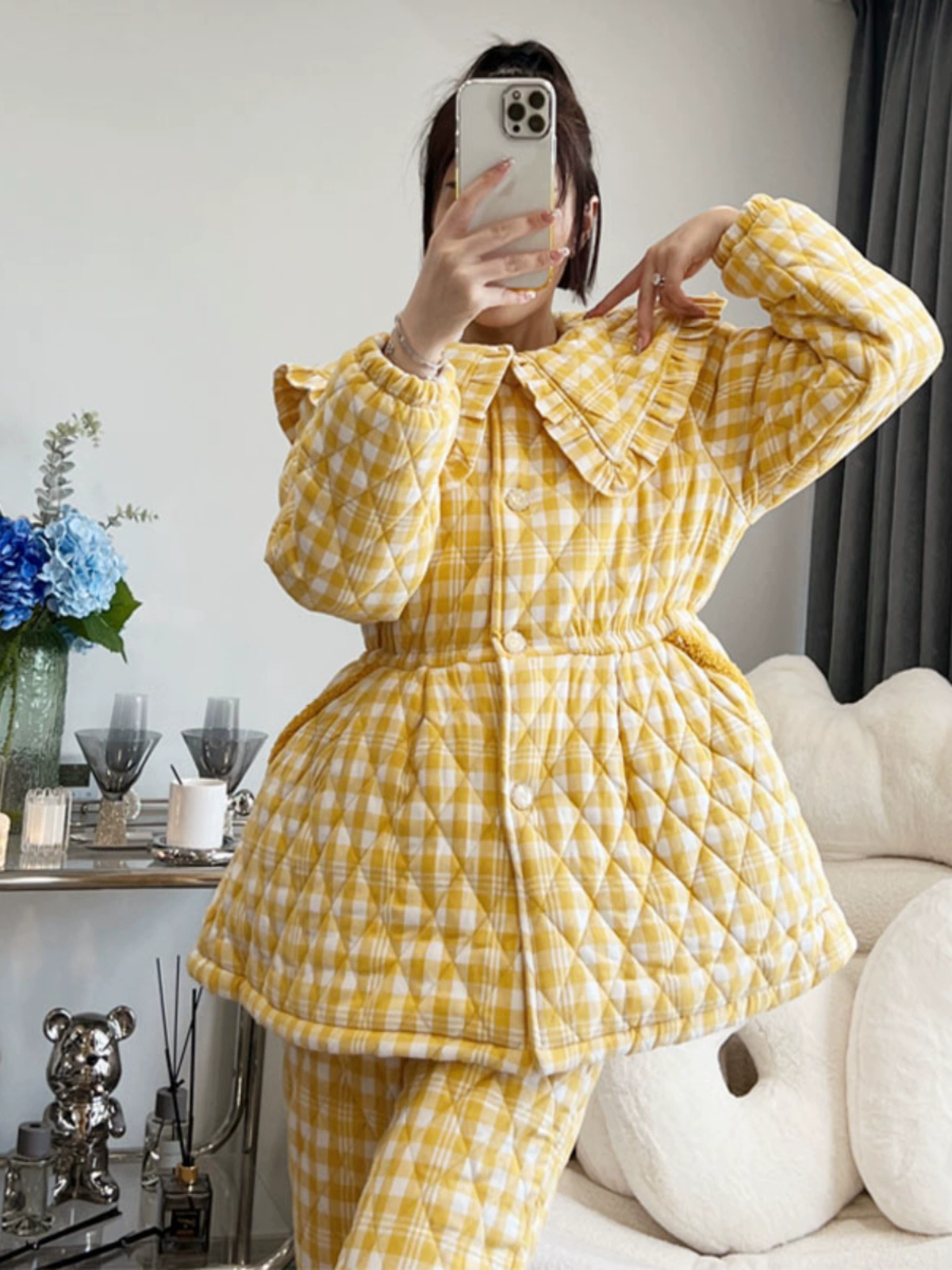 | nameOriginal | Pink grape coral velvet pajamas for women in autumn and winter plus velvet and thickened three-layer quilted warm can be worn outside home clothes |