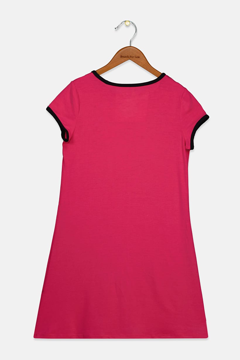 Pink Graphic Midi Dress with Short Sleeves for Girls.